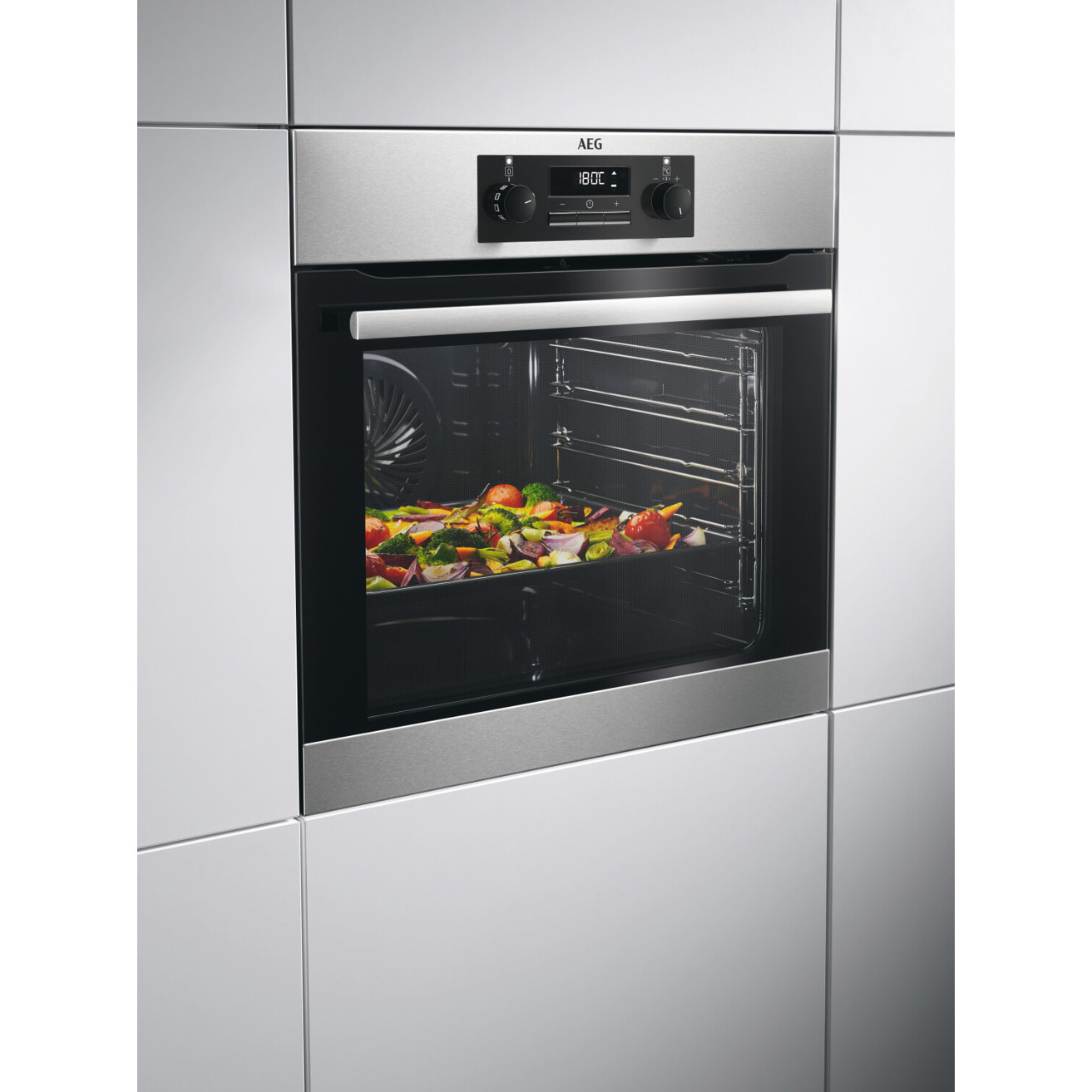 Der AEG BEB331010M Einbaubackofen bietet mit 71 Litern Volumen ausreichend Platz für Ihre Gerichte und überzeugt mit einer Energieeffizienzklasse von A+. Dank der vielseitigen Beheizungsarten wie Umluft, Pizzastufe und Grill gelingen Ihnen alle Speisen perfekt. Die versenkbaren Drehknöpfe sorgen für eine einfache Bedienung und ein elegantes Design.