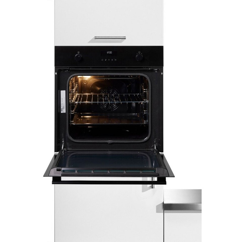 Mit versenkbaren Drehknöpfen und einem LED-Display bietet dieser Elektrobackofen eine moderne Bedienung und vielseitige Beheizungsarten wie Grill und Pizzastufe.