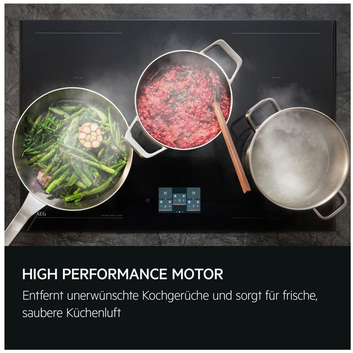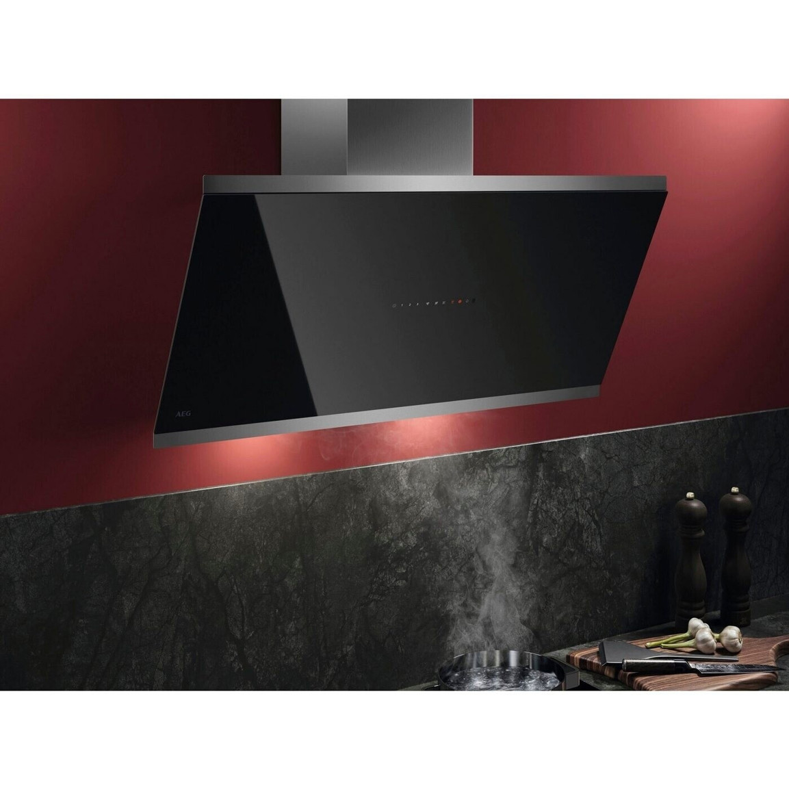 Die AEG GV77D91SL Dunstabzugshaube vereint ansprechendes Design mit leistungsstarker Funktionalität. Als schicke Kopffreihaube in elegantem Schwarz passt sie perfekt in jede moderne Küche. Mit einer Breite von 90 cm und WLAN-Fähigkeit bietet sie Komfort und Effizienz für den täglichen Gebrauch.