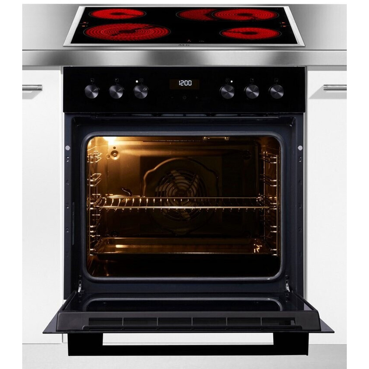 Der AEG HH24HSB Elektroherd bietet Ihnen eine komplette Kochlösung mit vier Glaskeramik-Kochzonen und einem großzügigen Backofen. Dank der Energieeffizienzklasse A+ und einem Volumen von 72 Litern ist er ideal für jede Küche und unterstützt Sie effizient bei der Zubereitung Ihrer Lieblingsgerichte.