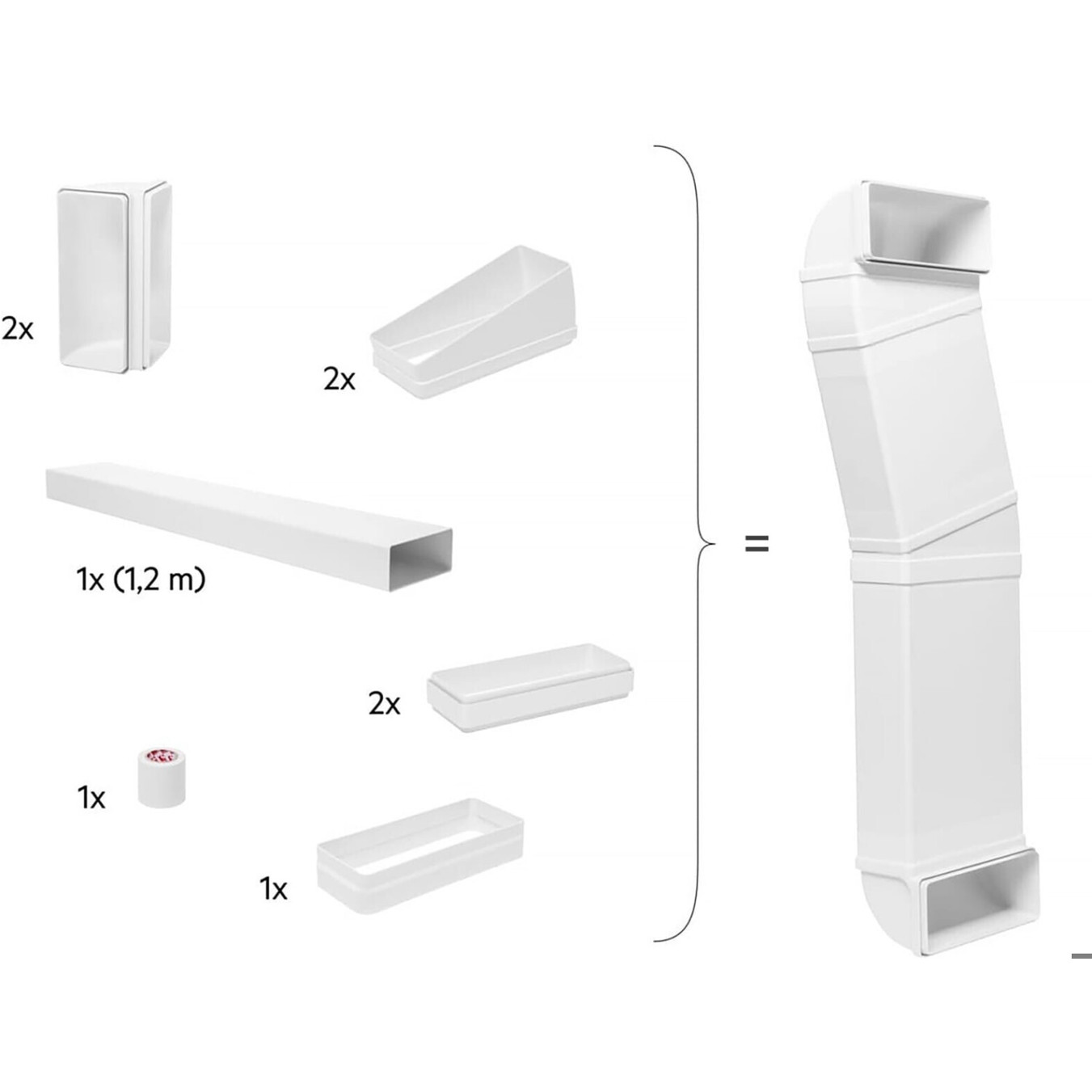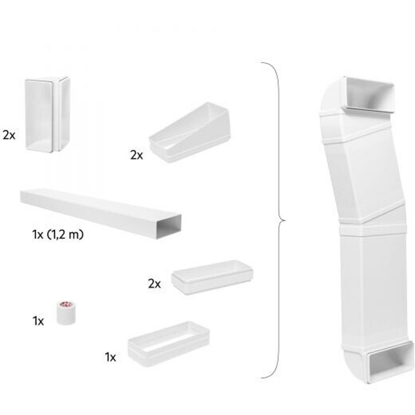 Der Lieferumfang beinhaltet einen Adapter und PVC-Klebeband, womit eine umfassende Ausstattung für die schnelle Inbetriebnahme gewährleistet ist. Mit diesem Zubehör stellen Sie sicher, dass Ihre Dunstabzugshaube optimal funktioniert und stets reine Luft liefert, was es zu einer praktischen und langlebigen Ergänzung für jede Küche macht.