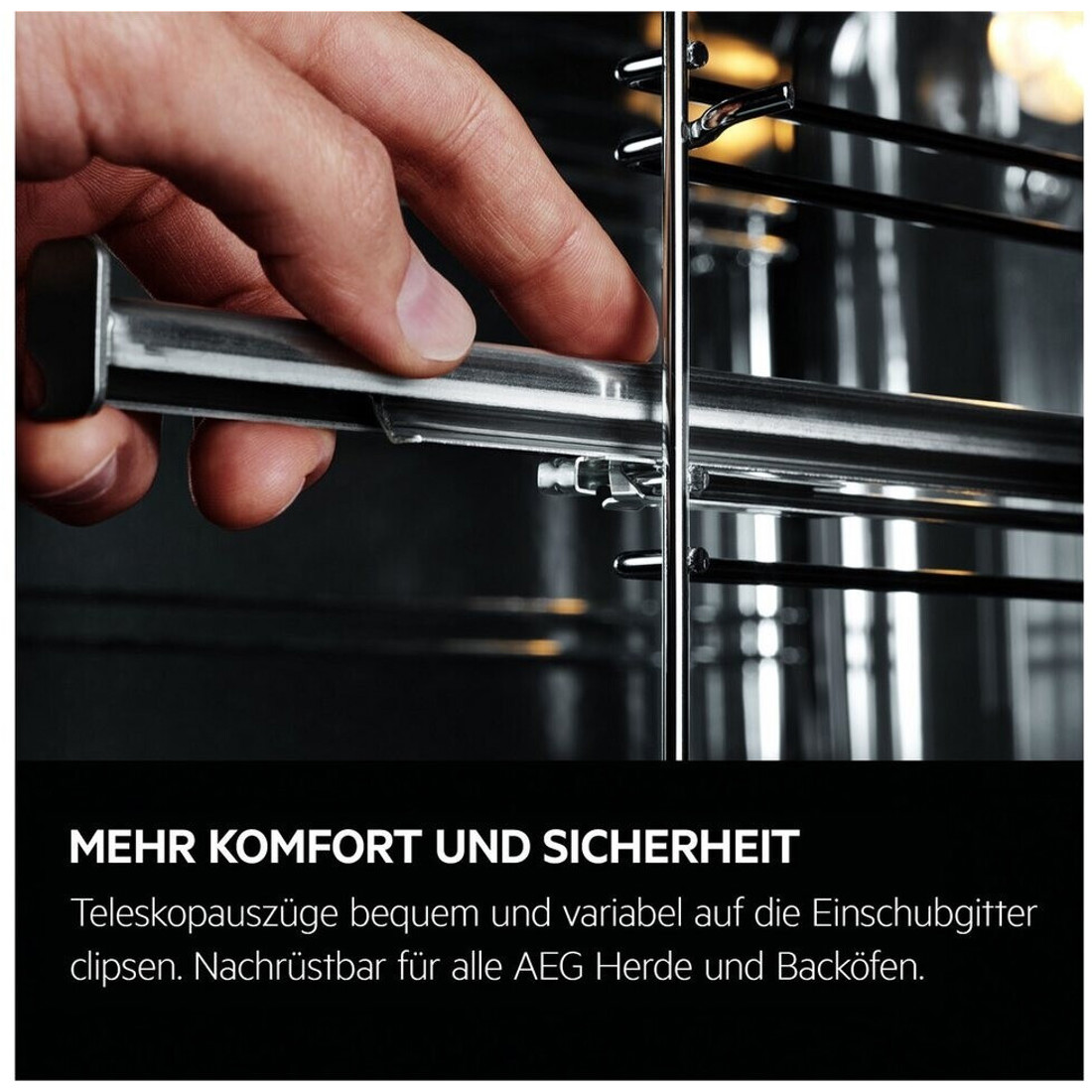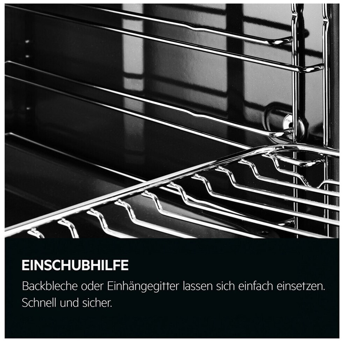 Das AEG MaxiKlasse Herd-Set OU5AE20SM + HE604062XB ist ein leistungsstarker Elektroherd mit Pyrolyse-Reinigungsfunktion und einem großzügigen 71 Liter Garraum.