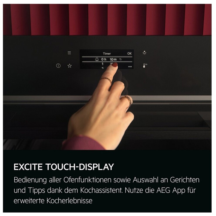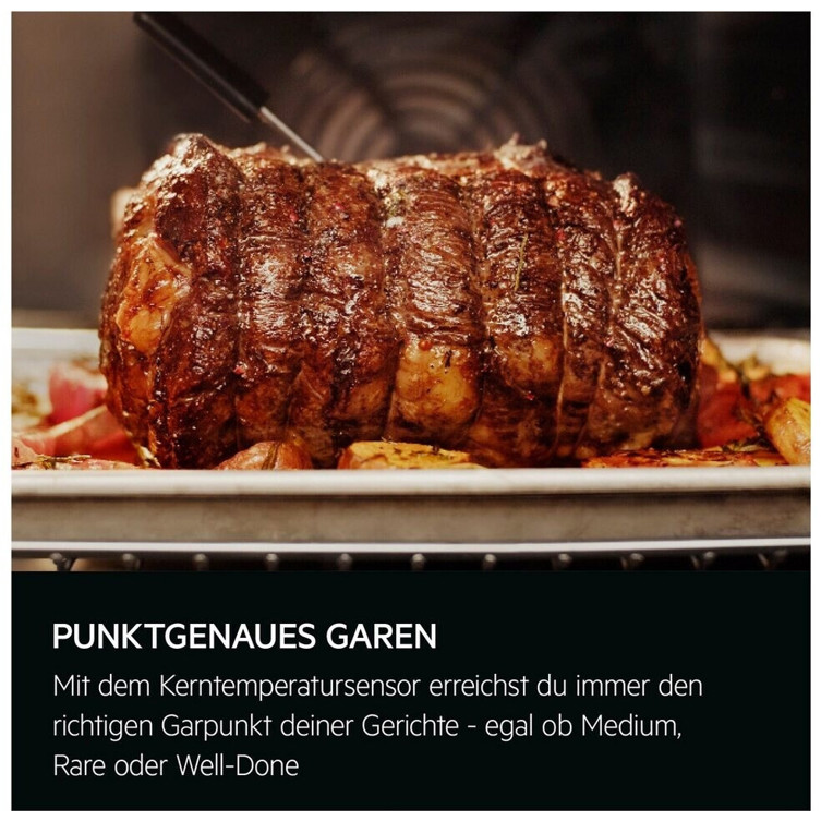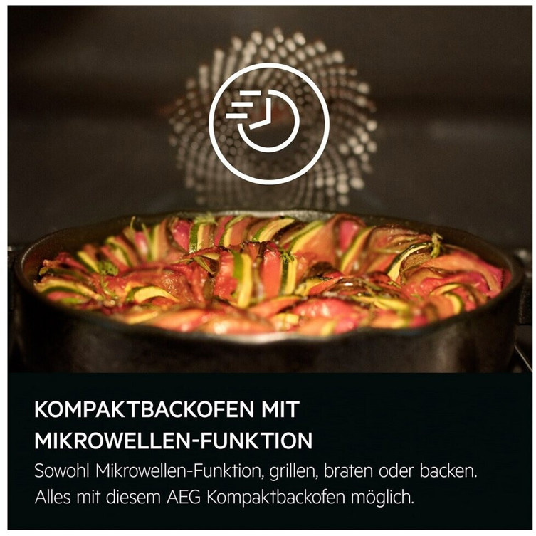 Der AEG NKK8N621B Kompaktbackofen aus der Serie AEG CombiQuick bietet Ihnen mit 25 Betriebsarten und einem Temperaturbereich von 30 - 230 °C vielfältige Zubereitungsmöglichkeiten. Dank WLAN und App-Steuerung über My AEG Kitchen lässt sich das Gerät bequem per Smartphone bedienen.