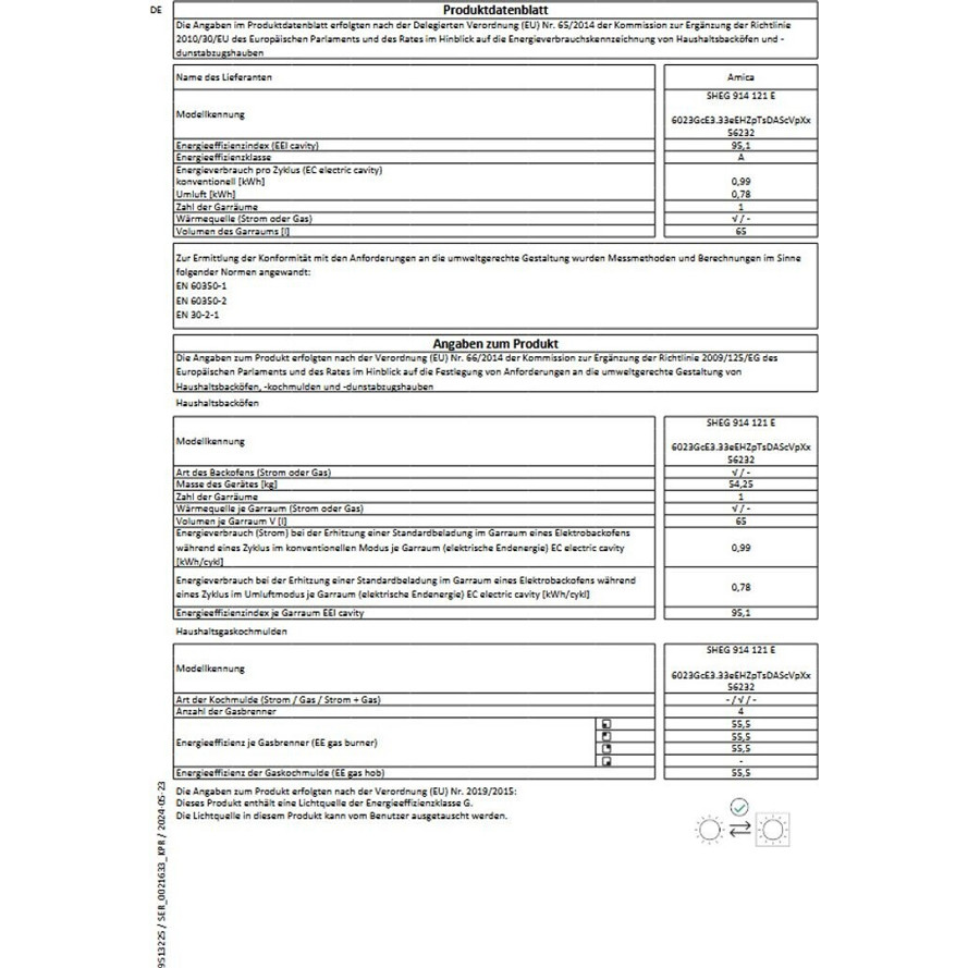 Der Amica SHEG 914 121 E Standherd mit Gaskochfeld und Umluftfunktion ist eine vielseitige Ergänzung für jede Küche. Mit 4 Kochstellen und einem geräumigen 65 Liter Backofen bietet er ausreichend Platz für die Zubereitung Ihrer Lieblingsgerichte.
