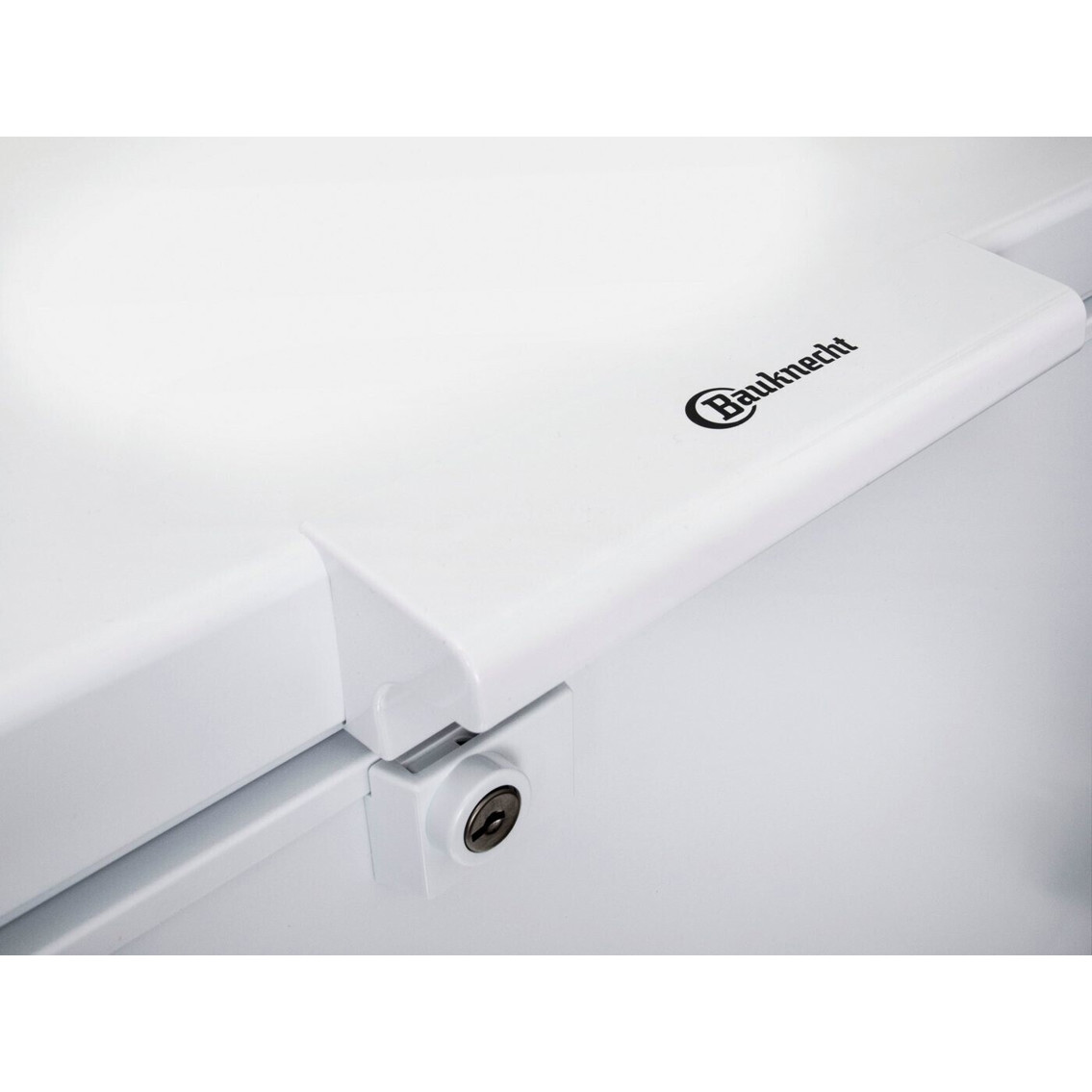 Mit ihrem modernen Design in Weiß fügt sich die Gefriertruhe nahtlos in jede Küchenumgebung ein. Die integrierte Kindersicherung und die Innenraumbeleuchtung bieten zusätzlichen Komfort und Sicherheit im Alltag.