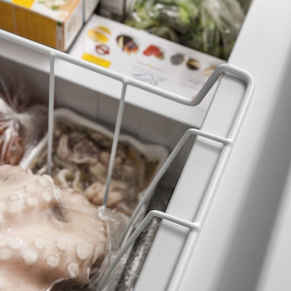 Die Gefriertruhe verfügt über eine Kindersicherung und eine Innenraumbeleuchtung für höchsten Bedienkomfort. Dank der Maße von 91,6 cm x 101 cm ist sie platzsparend und fügt sich nahtlos in jede Umgebung ein. Mit dieser Gefriertruhe treffen Sie eine ausgezeichnete Wahl für Qualität und Funktionalität in Ihrem Haushalt.