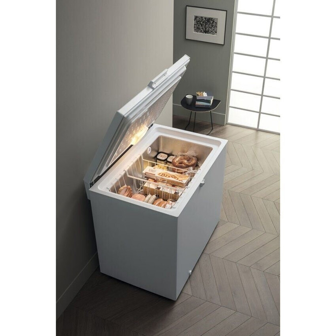 Mit praktischer Innenausstattung wie Tauwasserablauf, herausnehmbarer Trennwand, Vorratskörben, Innenraumbeleuchtung und Eiswürfelschale wird die Organisation zum Kinderspiel. Zusätzliche Extras wie Rollen und ein LED-Bedienfeld erhöhen den Bedienkomfort dieser Gefriertruhe.