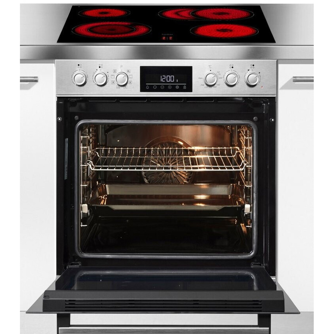 Die intuitive Bedienung über Drehschalter und ein versenkbares Bedienelement für den Backofen machen die Handhabung besonders komfortabel. Die Klapptür mit Glasfront und der 2-fach Teleskop-Auszug erleichtern das Handling von Backblechen und Grillrosten. Mit Kindersicherung und Restwärme-Indikatoren ist zudem für extra Sicherheit gesorgt.