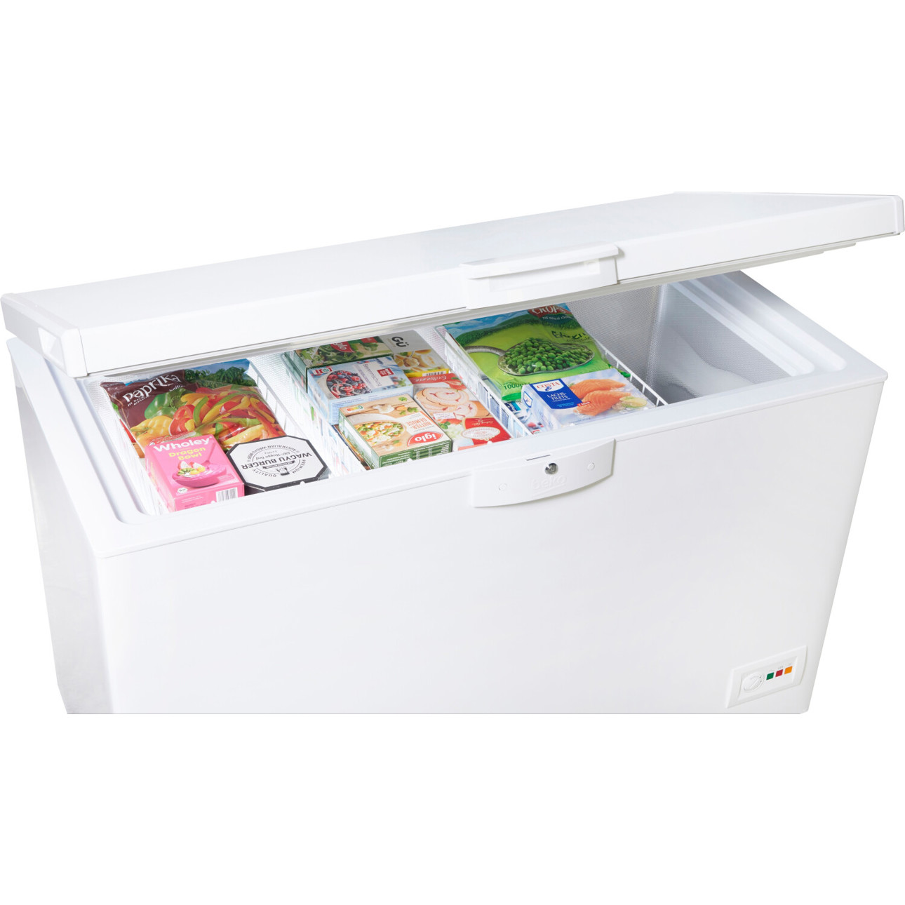 Die Gefriertruhe in Weiß ist leise im Betrieb mit nur 38 dB(A) und verfügt über eine optische Warnanzeige für zusätzliche Sicherheit. Die Innenraumausstattung mit Vorratskörben, Innenraumbeleuchtung und regelbarem Thermostat sorgt für eine übersichtliche und komfortable Nutzung.