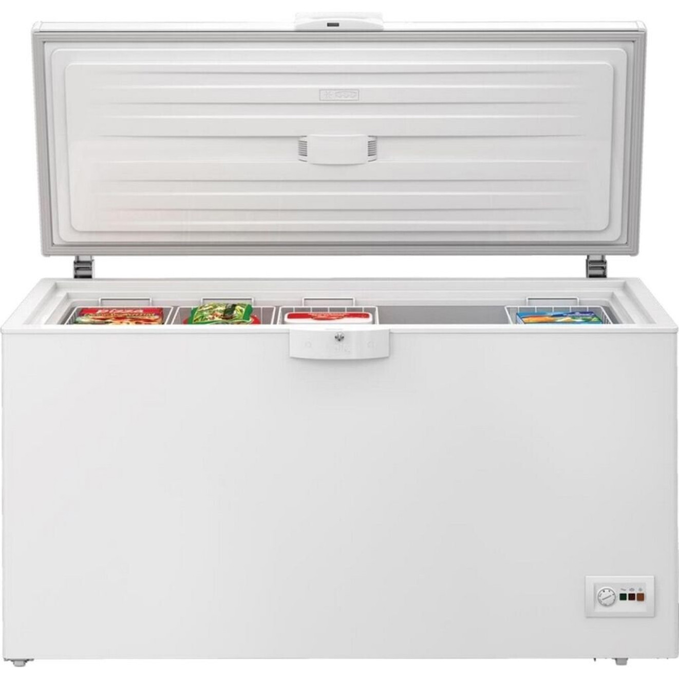 Die Beko HSM35050 Gefriertruhe bietet mit 350 Litern ausreichend Platz für Ihre Tiefkühlwaren. Das Gerät in elegantem Weiß überzeugt durch seine statische Kühlung und den geringen Geräuschpegel von nur 36 dB(A).