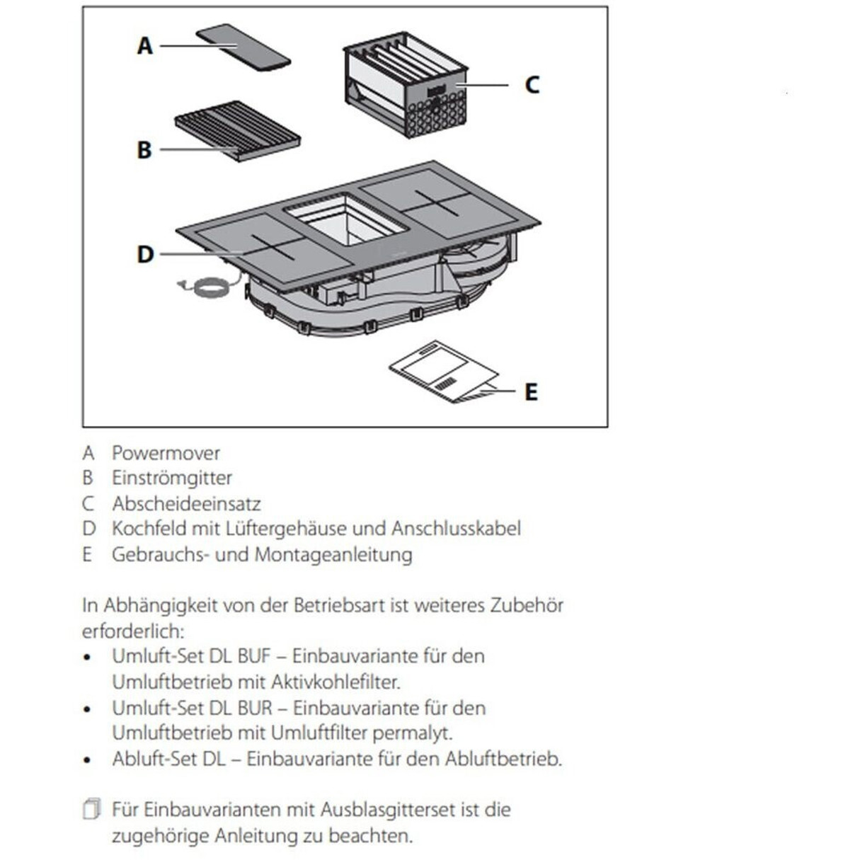 Mit 9 Leistungsstufen und Touch-Control-Bedienelementen lässt sich die Kochzone präzise steuern. Der Kochfeldabzug ermöglicht sowohl Abluft- als auch Umluftbetrieb und sorgt für hervorragende Luftreinigung. Die innovative powerMove Funktion optimiert das Kocherlebnis.