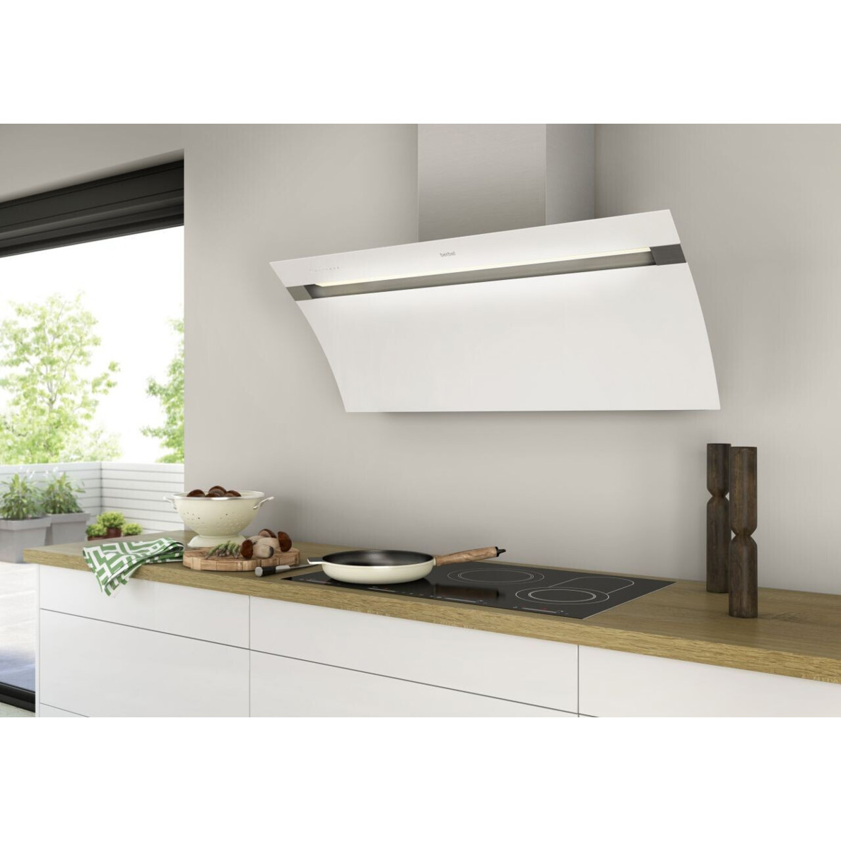 Die Berbel Glassline Kopffreihaube in Weiß vereint stilvolles Design mit hoher Funktionalität und Effizienz. Mit einem geringen Geräuschpegel von 58 dB und der Wahl zwischen Umluft- und Abluftbetrieb passt sie sich flexibel an Ihre Küchenbedürfnisse an. Die intuitive mechanische Steuerung sowie die spülmaschinengeeigneten Fettfilter machen die Bedienung und Wartung besonders komfortabel.