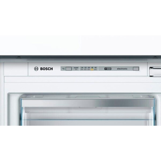 Der Bosch GIV11AFE0 Einbaugefrierschrank bietet 72 Liter Gefrierbereich und ist ideal für kleine Haushalte. Mit Funktionen wie Schnellgefrieren, Temperaturalarm und LowFrost-System bleiben Ihre Lebensmittel optimal frisch.