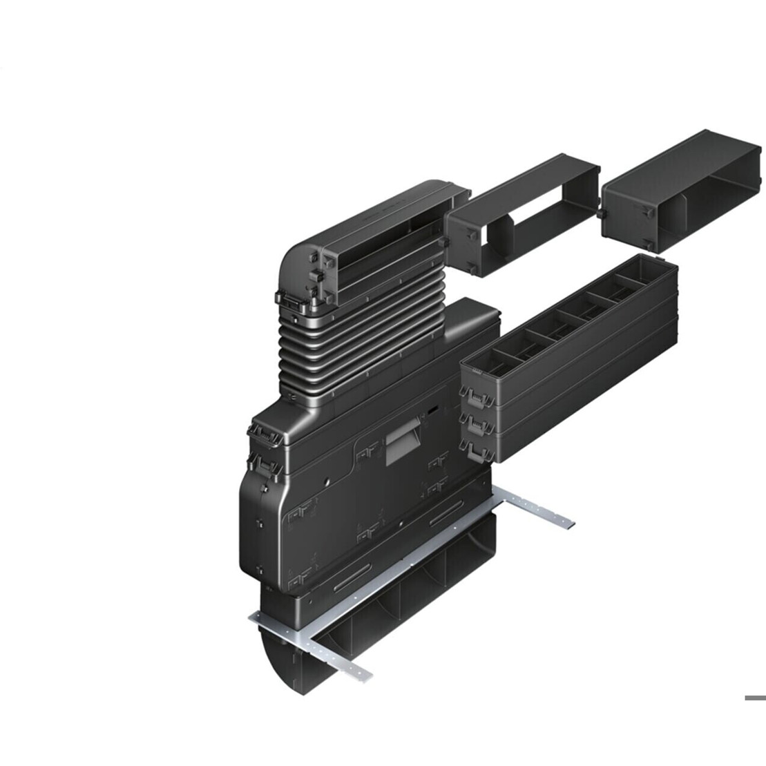 Das Bosch Hez381501 Umluftset, gefertigt aus robustem Kunststoff in elegantem Schwarz, bietet eine ideale Lösung zur Umrüstung Ihrer Dunstabzugshaube auf Umluftbetrieb. Es sorgt für eine effiziente Filterung der Luft in Ihrer Küche.