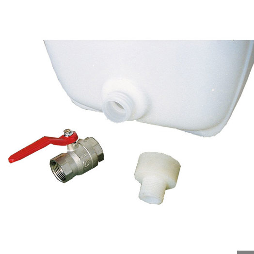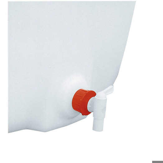 Das Fass verfügt über einen Auslauf mit einem Hahn (DN18) zur einfachen Entnahme von Flüssigkeiten. Alternativ kann der mitgelieferte Verschlussdeckel montiert werden.