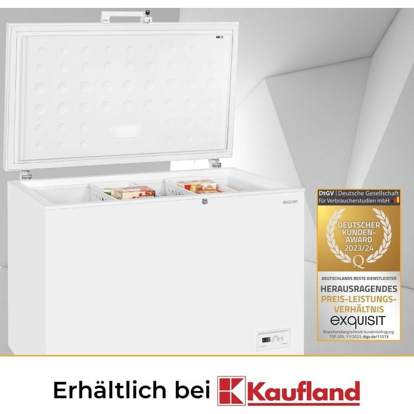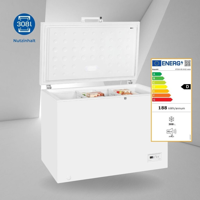 Die Exquisit GT320-HE-040D Gefriertruhe bietet mit einem Fassungsvermögen von 308 Litern ausreichend Platz für Ihre Lebensmittel. Dank der Schnellgefrierfunktion frieren Sie frische Ware zügig ein und bewahren Vitamine und Nährstoffe optimal. Die mechanische Temperaturregelung sorgt dabei für eine einfache Handhabung.