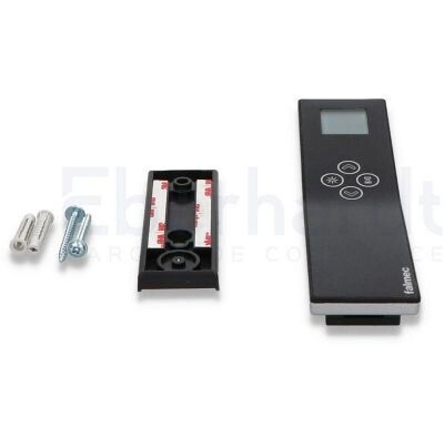 Die Falmec Fernbedienung ist ein rechteckiges, schwarzes Zubehörteil für Ihre Dunstabzugshaube und bietet durch ihr integriertes Display eine komfortable Bedienung. Sie ist speziell für Dunstabzugshauben konzipiert und ermöglicht eine einfache Steuerung der Lüfterfunktionen.