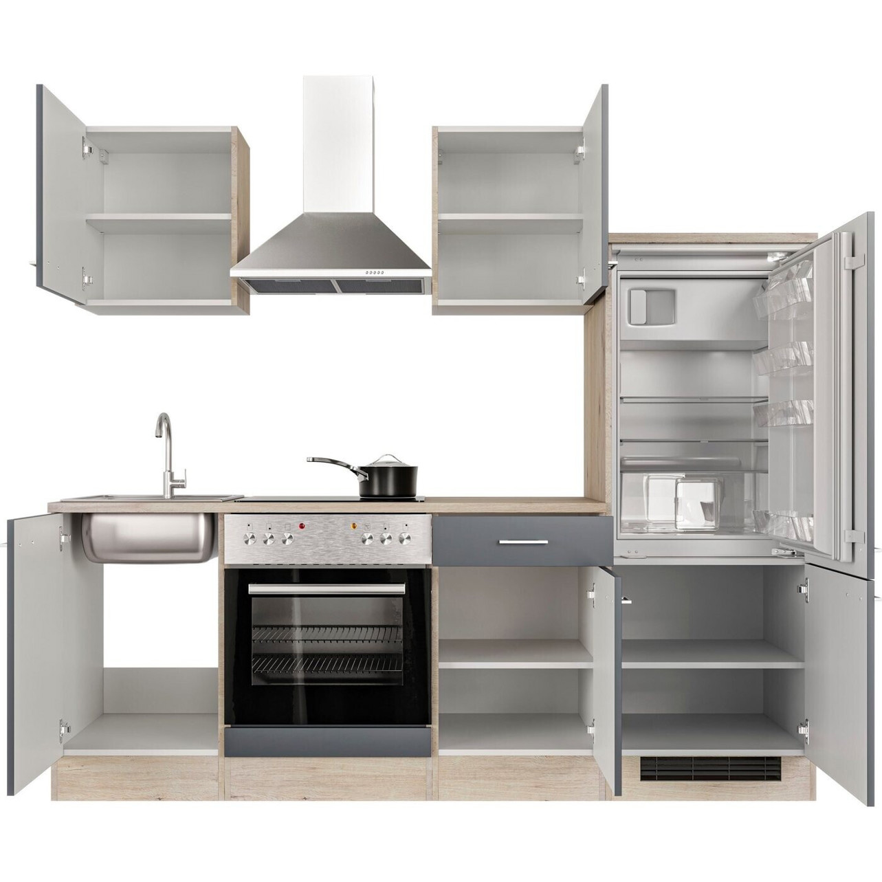 Die Flex-Well Küchenzeile Tiago in basaltgrau matt bietet eine flexible und raumsparende Lösung für Ihre Küche. Mit einer Breite von 220 cm und reversibler Ausführung lässt sich diese Miniküche optimal an Ihre Bedürfnisse anpassen.