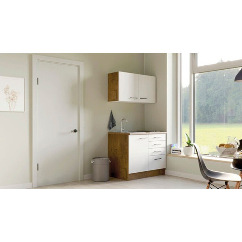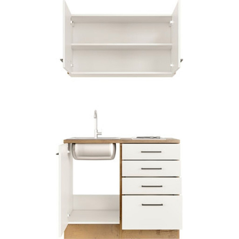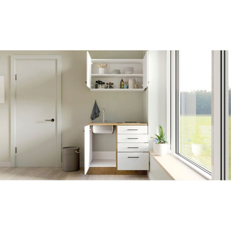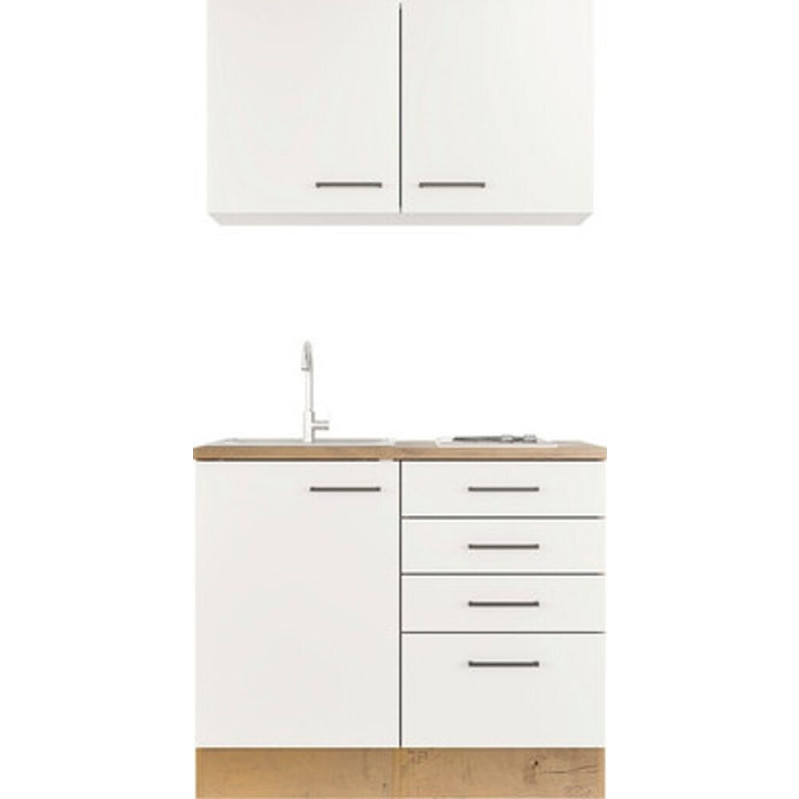 Die Flex-Well VINTEA Miniküche in mattem Weiß ist eine platzsparende und praktische Lösung für kleine Wohnräume oder Büros. Mit einer Breite von 100 cm und einer Tiefe von 60 cm bietet sie alles Notwendige auf kleinem Raum, inklusive Kochfeld und Schublade.