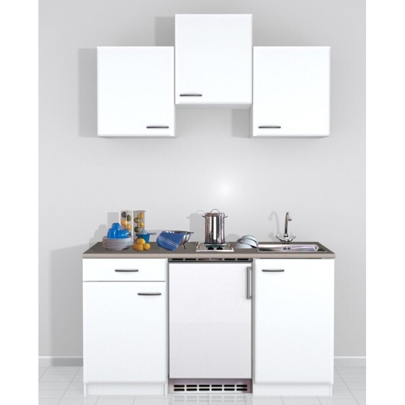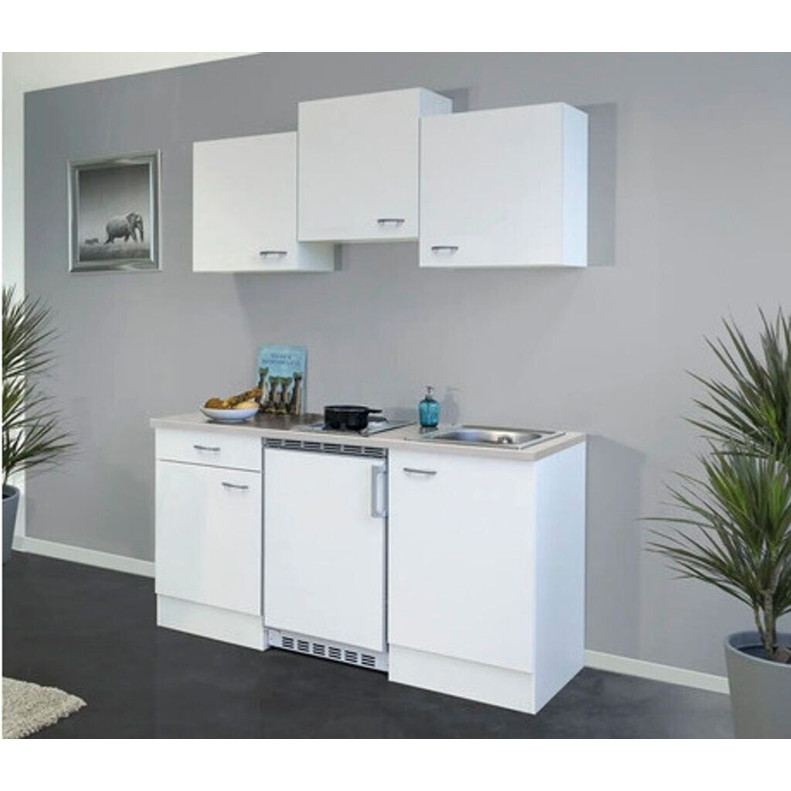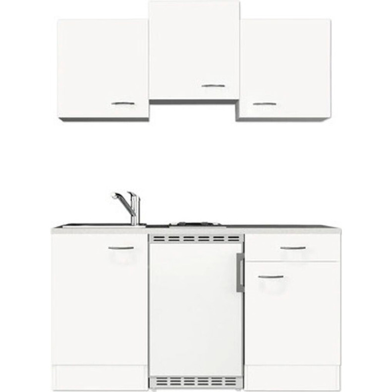Die Flex-Well Wito Singleküche in strahlendem Weiß bietet eine kompakte und effiziente Küchenlösung für kleine Wohnräume. Mit einer Breite von 150 cm integriert sie sich harmonisch in jede Umgebung und ist ideal für Singles, Paare oder Büroküchen.