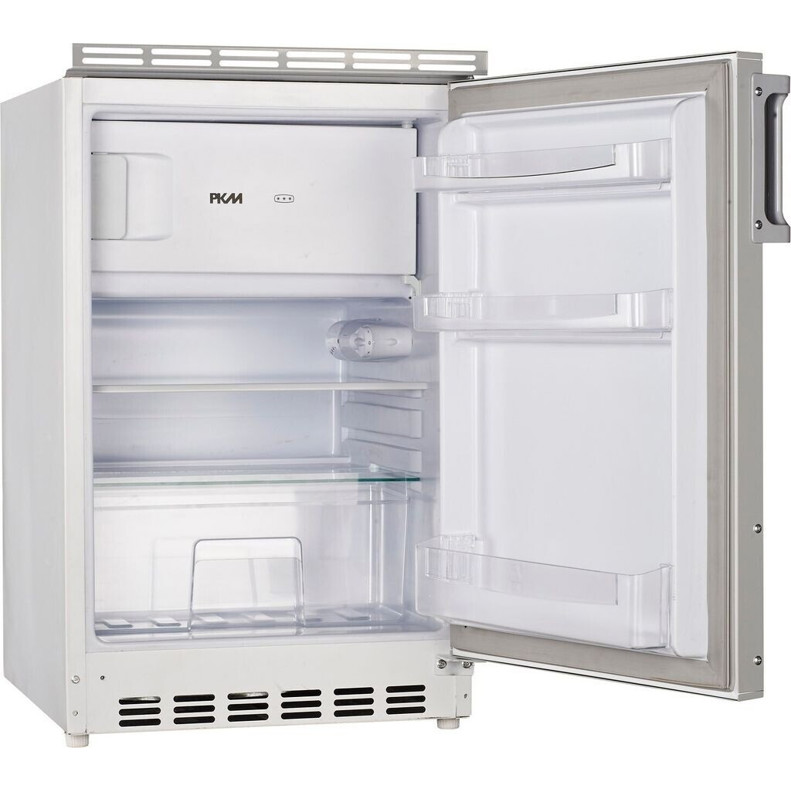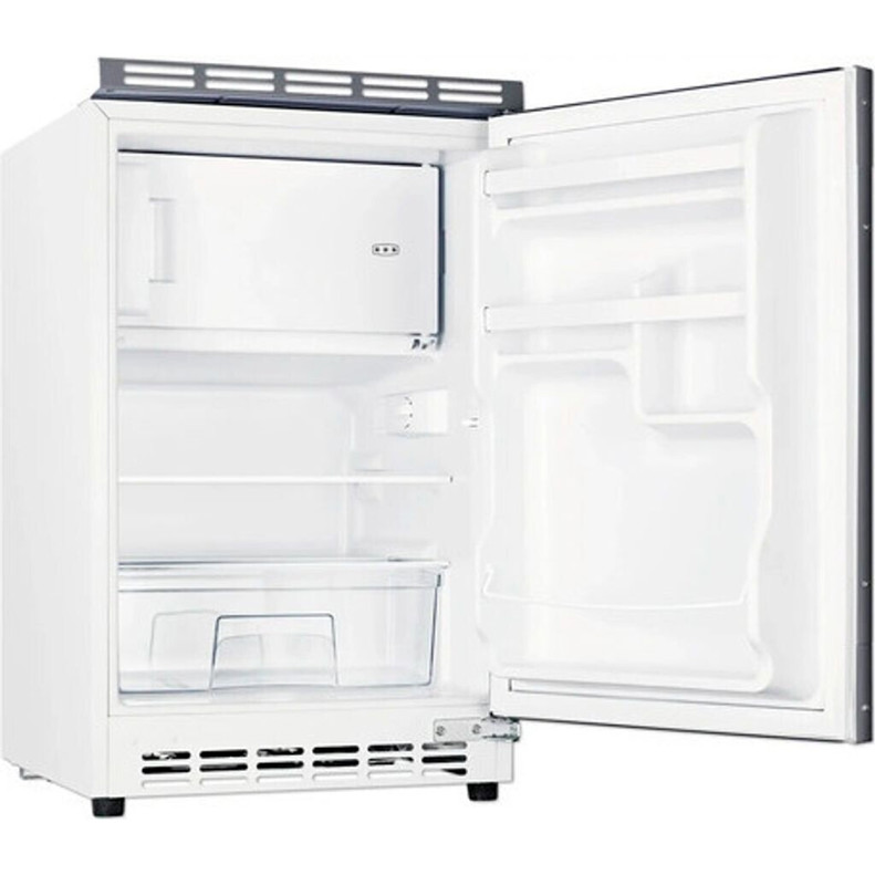 Diese Miniküche überzeugt mit einem Kühlschrank und praktischen Glasablageflächen sowie einer Abtauautomatik. Der Gefrierbereich hat ein Fassungsvermögen von 15 Litern und der Kühlbereich 68 Liter.