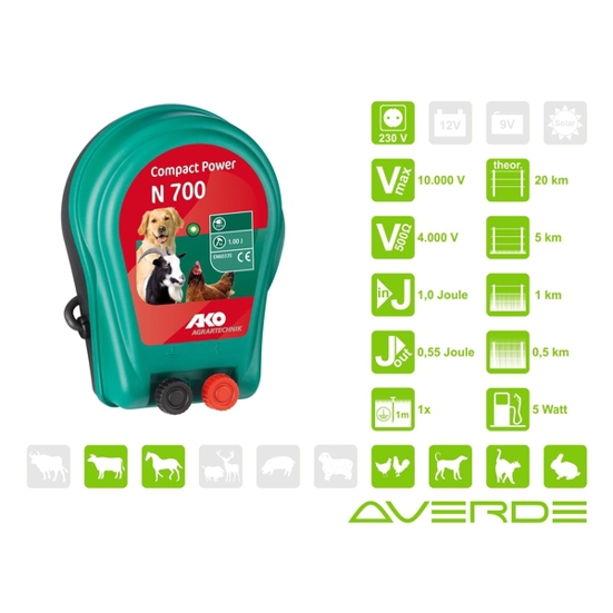 Das AKO Compact Power N700 ist ein äußerst handliches und vielseitiges Weidezaungerät, das speziell für kürzere Zäune wie Paddocks entwickelt wurde.