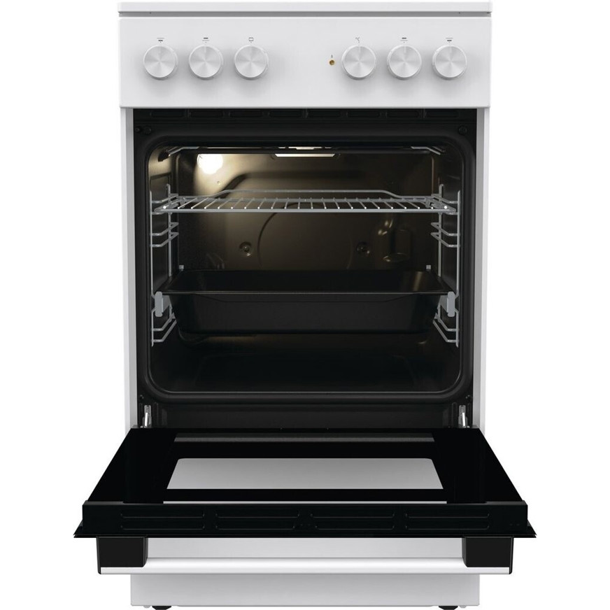 Der Gorenje GEC5A21WG Standherd bietet mit seinem geräumigen 74 Liter Garraum und Glaskeramik-Kochfeld vielseitige Möglichkeiten für Ihre Küche. Ausgestattet mit praktischen Funktionen wie Selbstreinigung und Schnellaufheizung, macht er das Kochen und Backen zum Vergnügen.