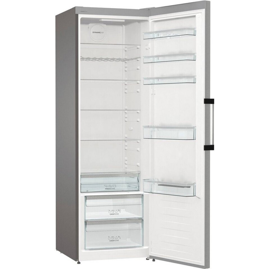 Der freistehende Gorenje R619DAXL6 Standkühlschrank in Silber bietet mit einem Gesamtfassungsvermögen von 398 Litern viel Platz für Familien. Ausgestattet mit LED-Beleuchtung und Sicherheitsglas-Abstellflächen, sorgt er für eine übersichtliche und sichere Lagerung Ihrer Lebensmittel. Das statische Kühlsystem mit Funktionen wie Schnellkühlen und Memory-Funktion hält die Innentemperatur konstant und zuverlässig.