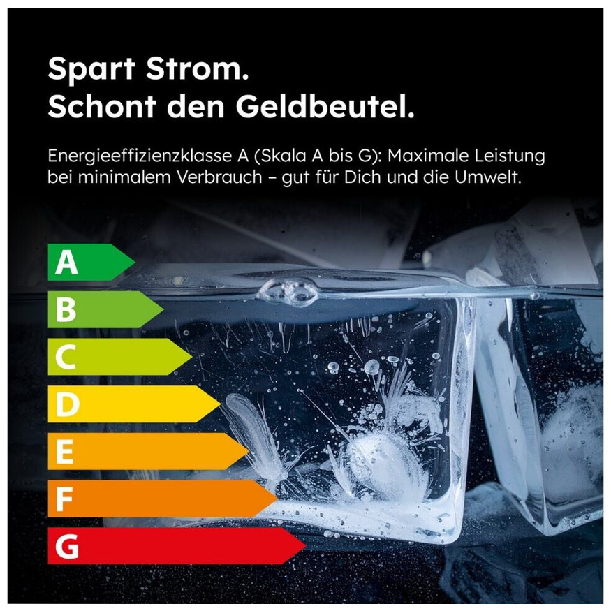 Mit einem jährlichen Stromverbrauch von nur 105 kWh und einem Geräuschpegel von 36 dB(A) ist dieser Gefrierschrank besonders energieeffizient und leise im Betrieb, was zusätzlichen Komfort im Alltag bietet.