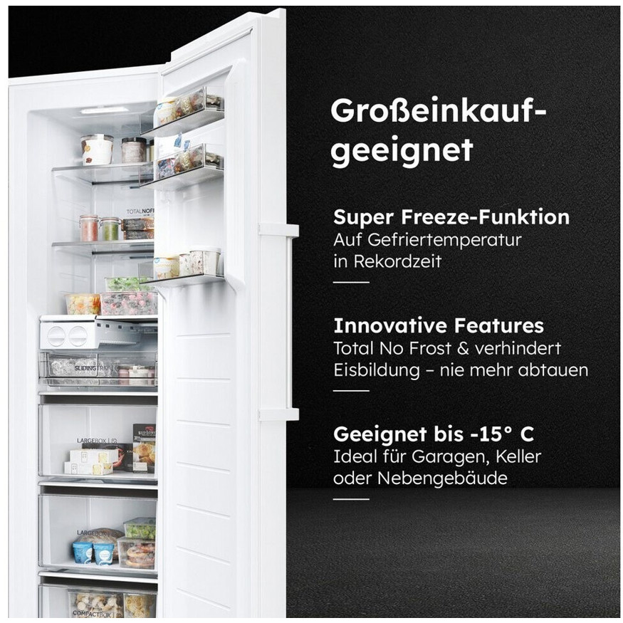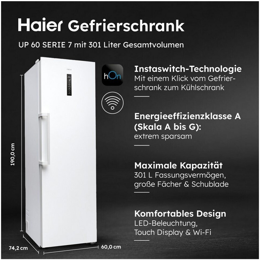 Der Haier H4F306WAH1 Standgefrierschrank in Weiß, freistehend, bietet mit einem Gefrierbereich von 301 Litern und einem Gefriervermögen von 14,8 kg in 24 Stunden ausreichend Platz für große Haushalte und eine zuverlässige Langzeitlagerung Ihrer Lebensmittel.