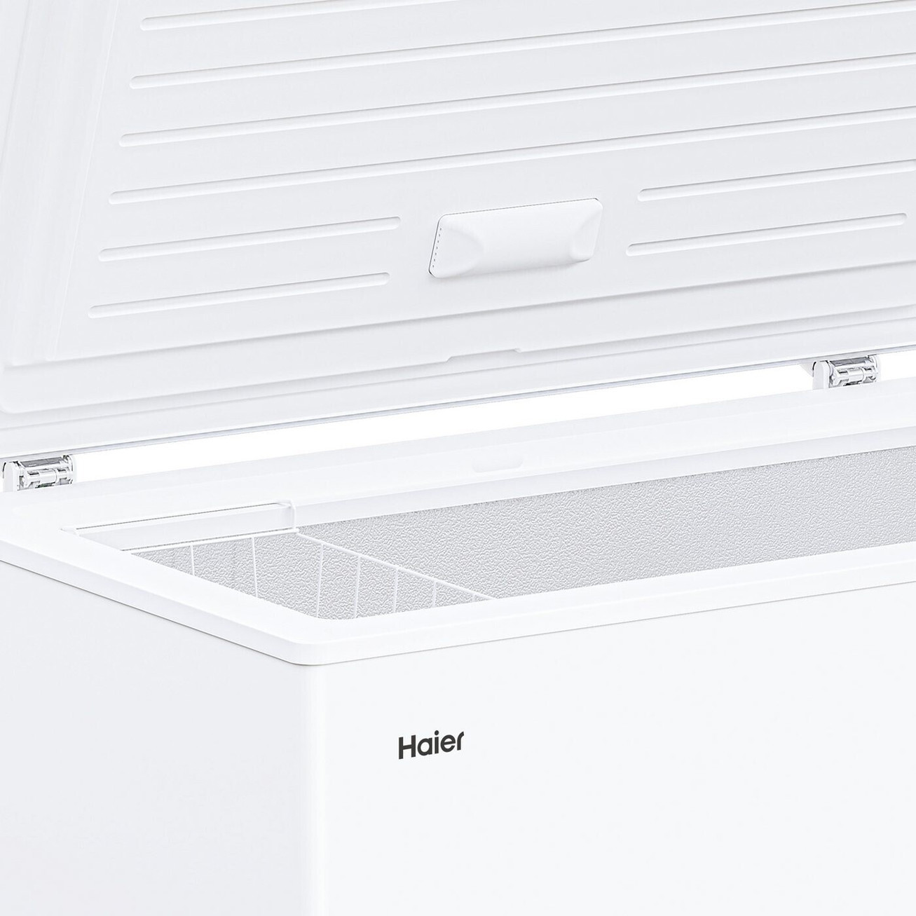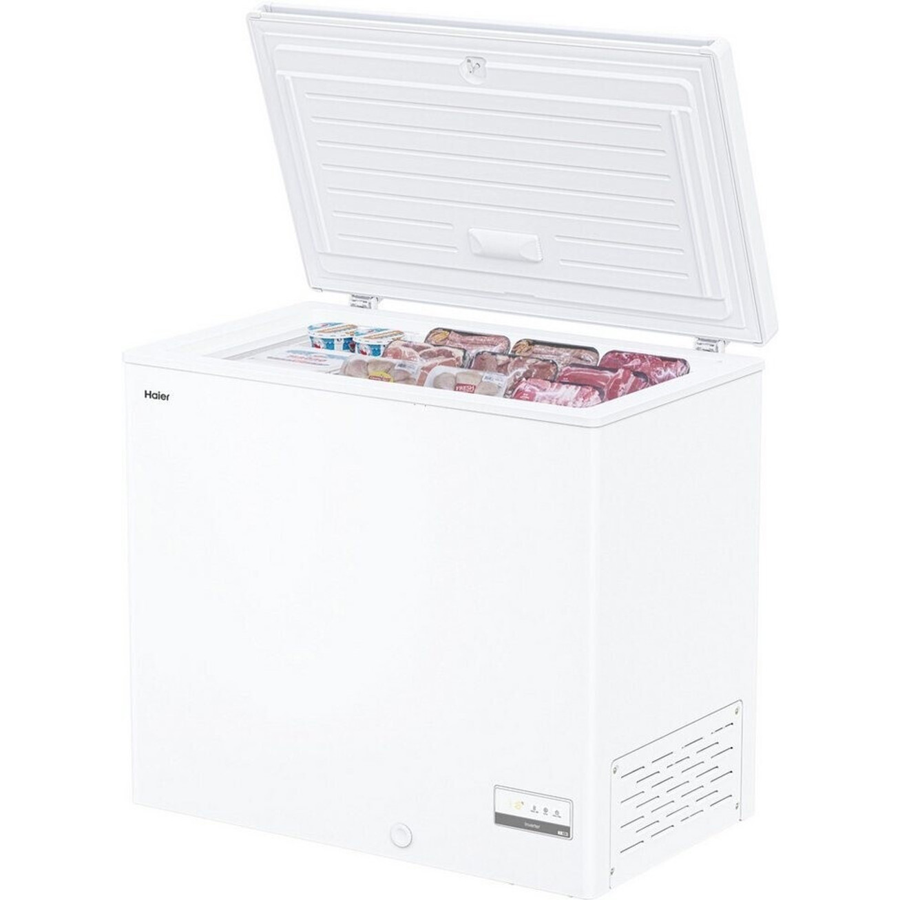 Die Haier HCE200C Gefriertruhe in elegantem Weiß bietet mit 196 Litern Nutzinhalt viel Platz für Ihre Tiefkühlwaren. Dank der praktischen Schnellgefrierfunktion werden frische Lebensmittel schnell und schonend eingefroren, wodurch wichtige Vitamine und Nährstoffe erhalten bleiben. Der leise Betrieb mit nur 38 dB(A) sorgt zudem für eine angenehme Atmosphäre.