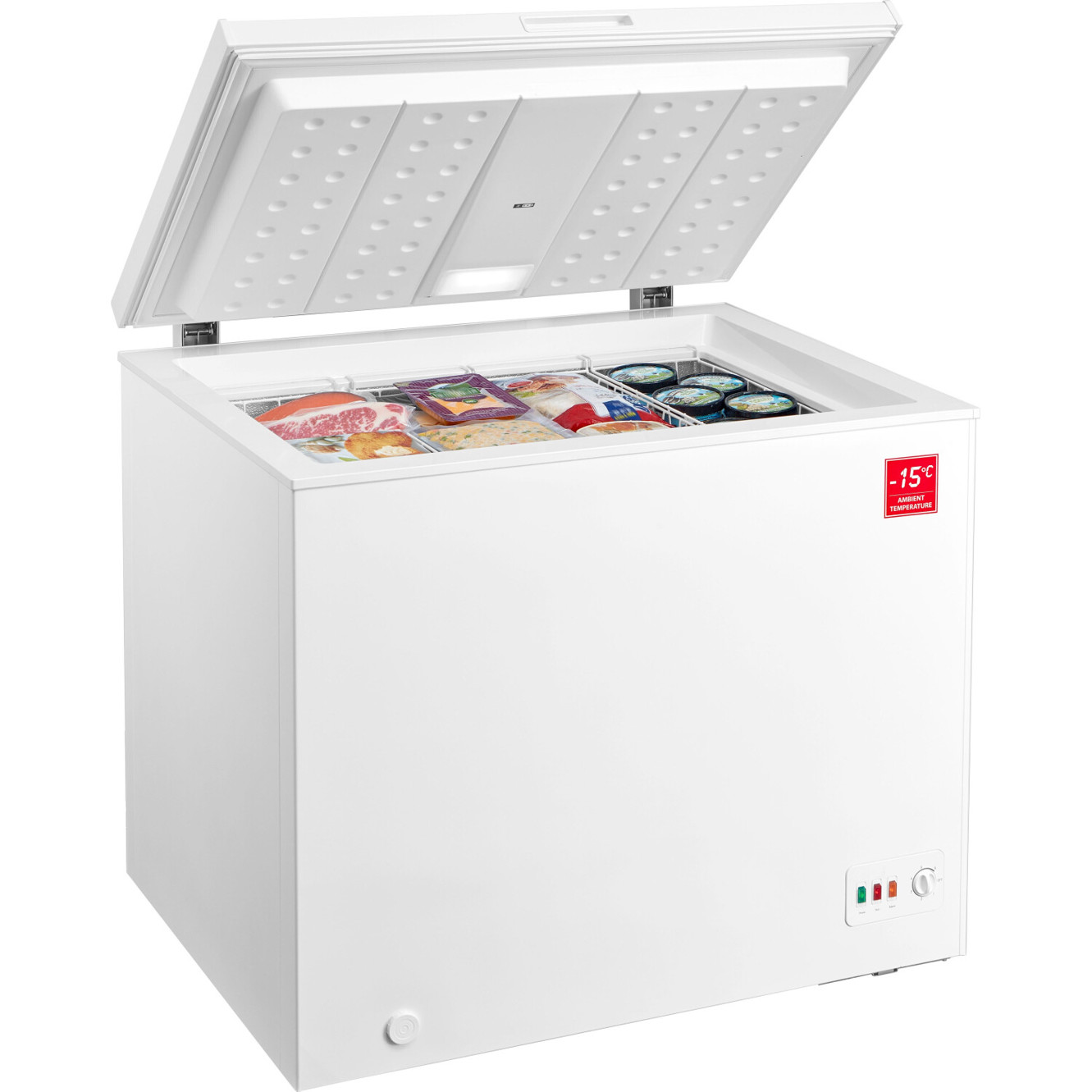 Mit einer Höhe von 85 cm, einer Breite von 94,5 cm und einer Tiefe von 69,9 cm passt diese Gefriertruhe gut in verschiedene Räumlichkeiten. Das Gerät ist in klassischem Weiß gehalten und ist mit vier praktischen Vorratskörben ausgestattet.