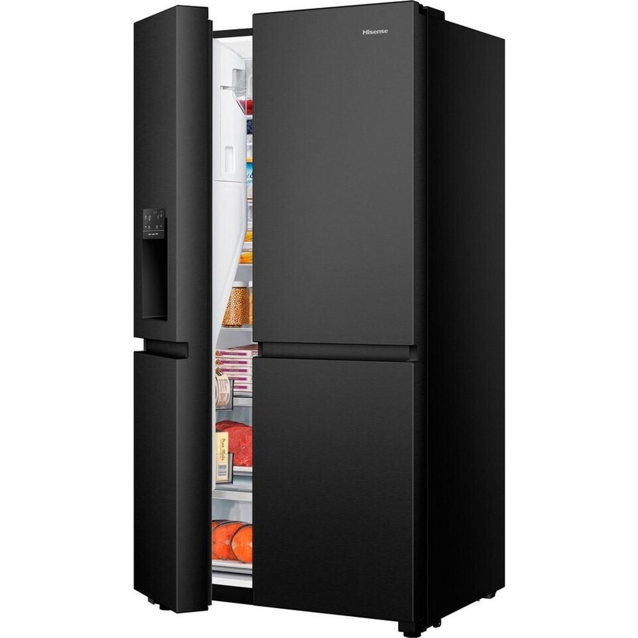 Der Hisense RS818N4TFE Side-by-Side-Kühlschrank in Schwarz bietet mit 632 Litern Gesamtinhalt viel Platz für Ihre Lebensmittel. Ausgestattet mit No-Frost-Technologie gehört manuelles Abtauen der Vergangenheit an.