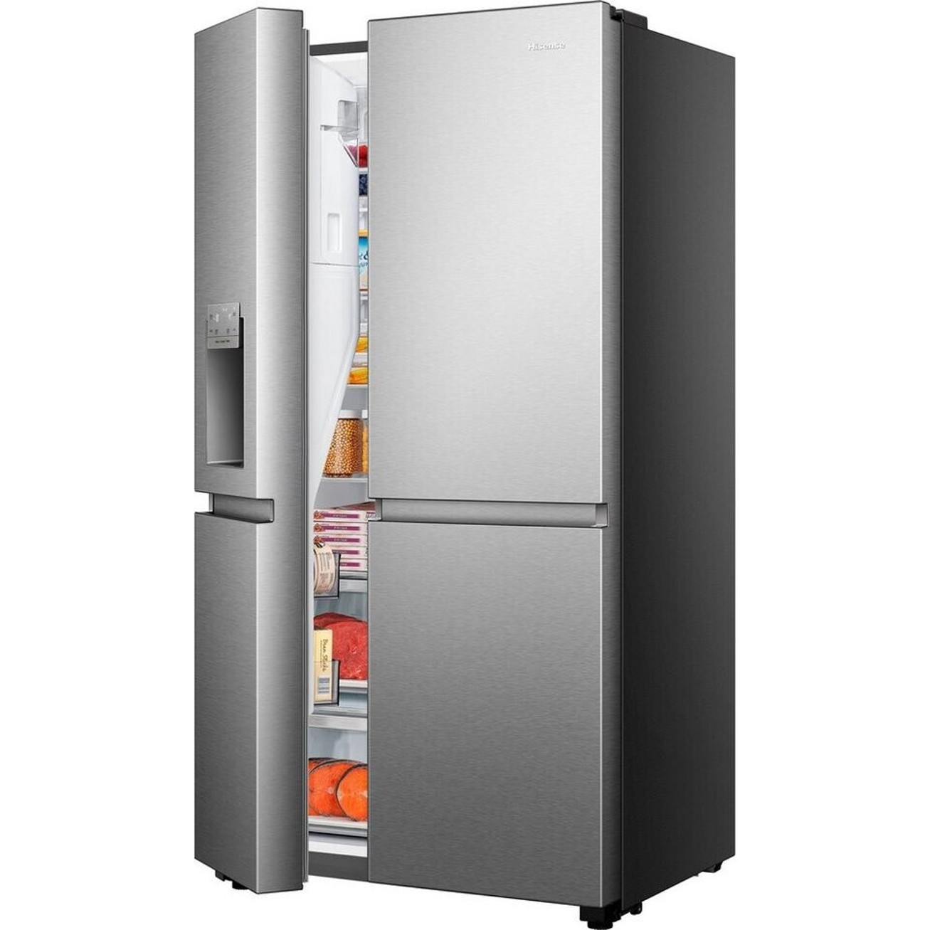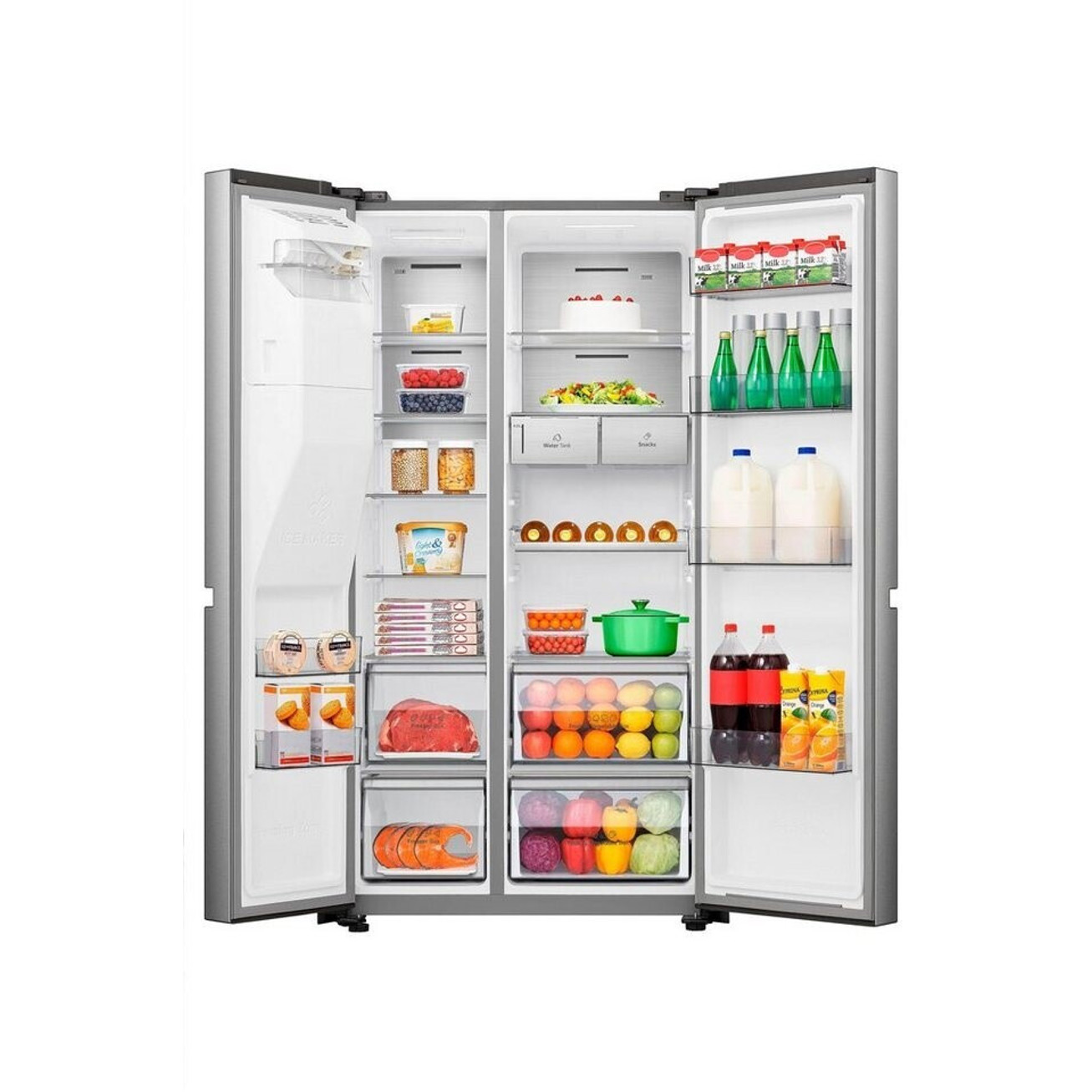 Der Hisense RS818N4TIE Side-by-Side-Kühlschrank bietet mit einem Gesamtfassungsvermögen von 632 Litern, davon 417 Liter im Kühlbereich und 215 Liter im Gefrierbereich, viel Platz für die Vorräte von Familien. Dank der No-Frost-Technologie gehört manuelles Abtauen der Vergangenheit an.