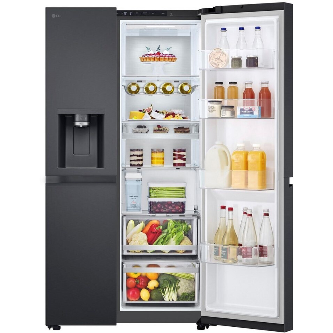Der LG GSLE91EVAC Side-by-Side-Kühlschrank in Schwarz bietet mit einem Gesamtfassungsvermögen von 628 Litern, davon 407 Liter im Kühlbereich und 221 Liter im Gefrierbereich, reichlich Platz für Ihre Lebensmittel. Dank No-Frost-Technologie und Umluftkühlung gehören manuelle Abtauvorgänge der Vergangenheit an.