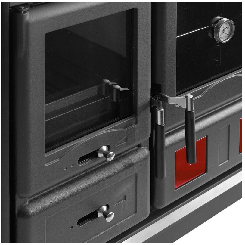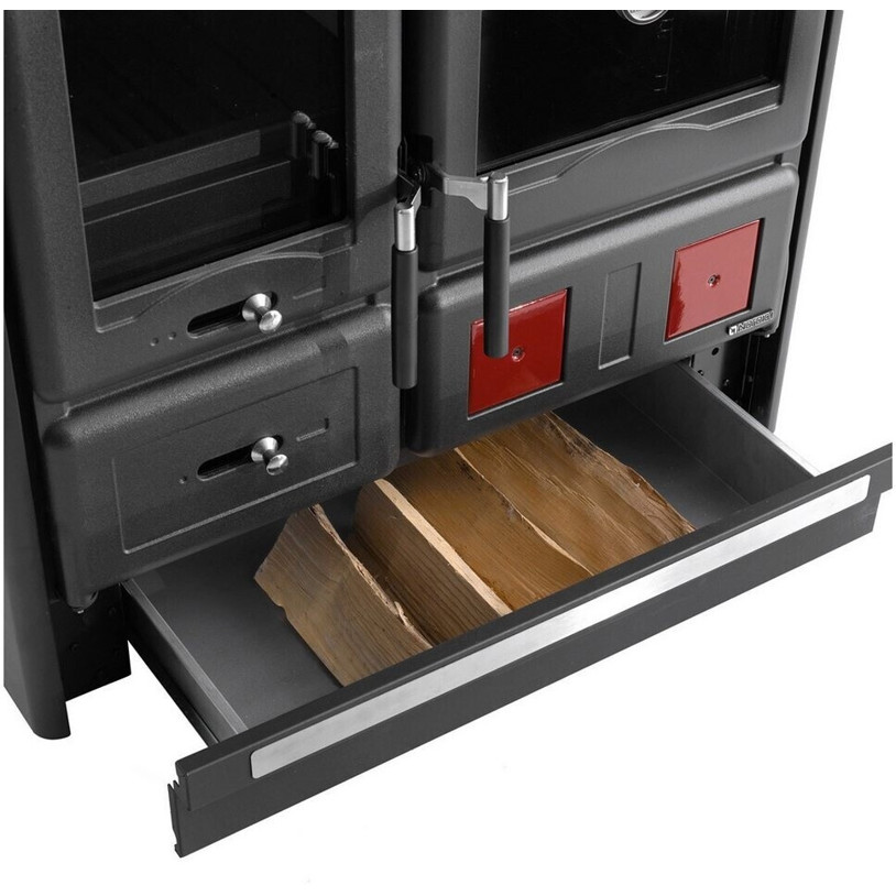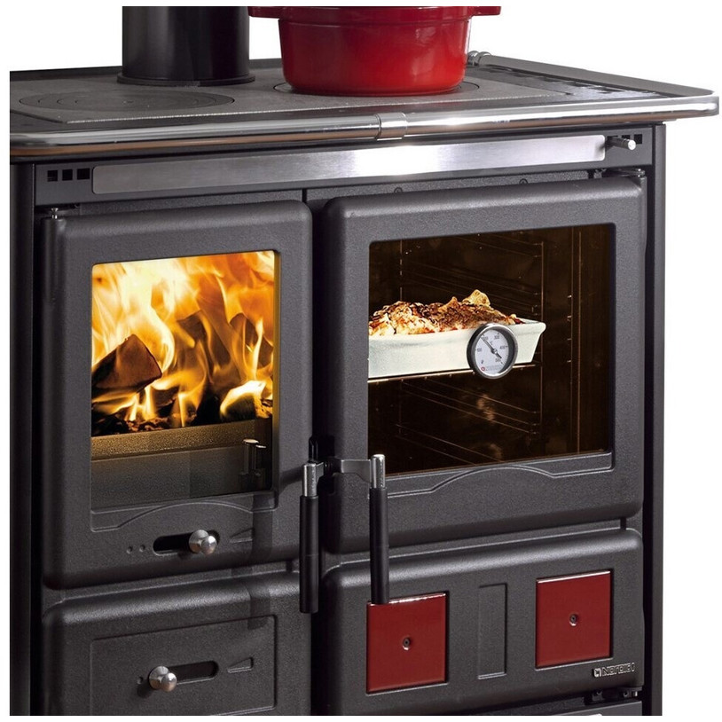 Der La Nordica Rosa L Küchenofen ist ein vielseitiger Festbrennstoffherd, der mit Scheitholz betrieben wird und sich ideal für die Beheizung und gleichzeitige Nutzung als Backofen eignet. Gefertigt aus robustem Gusseisen, garantiert er Langlebigkeit und eine effiziente Wärmeverteilung.