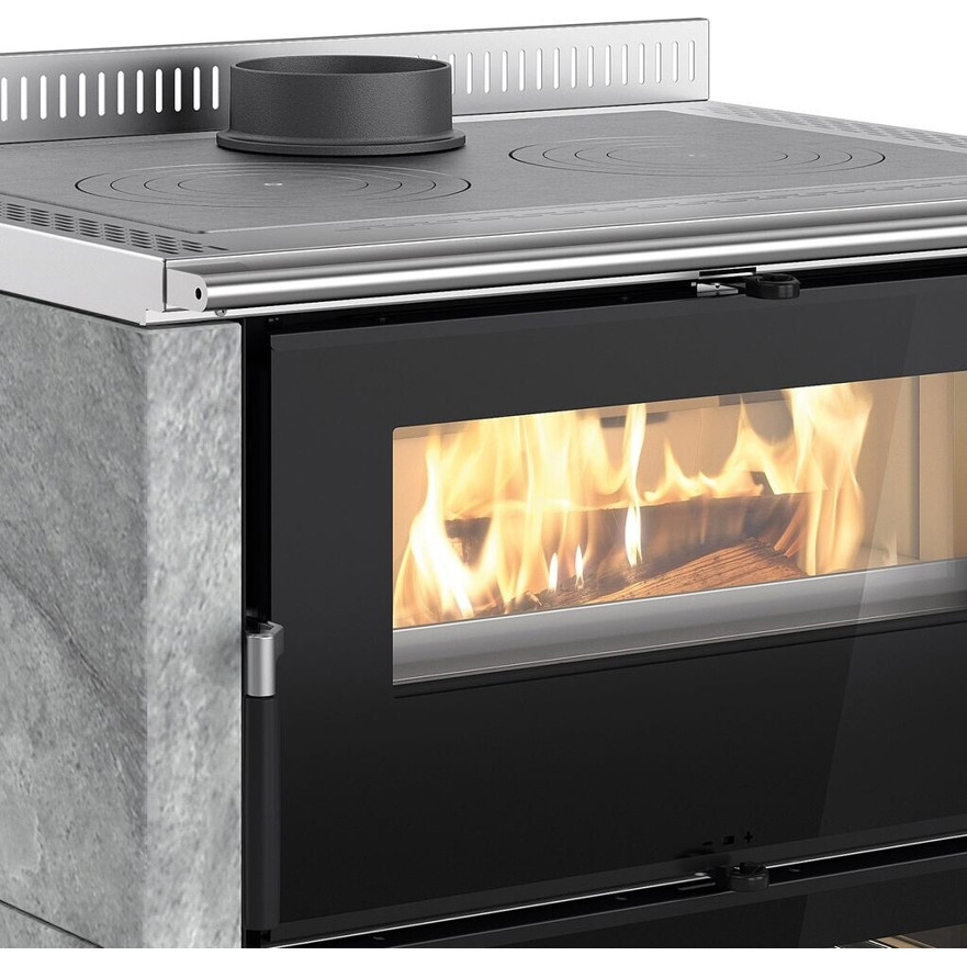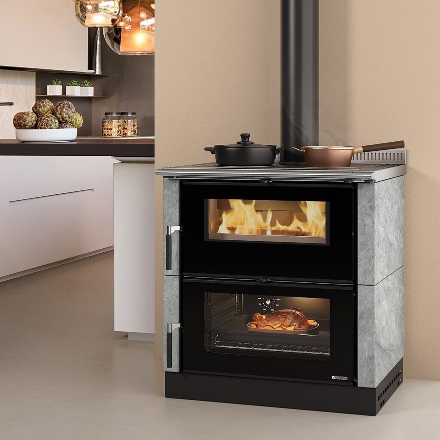 Der La Nordica Verona XXL Petra ist ein leistungsstarker Festbrennstoff-/Holzherd mit einem großzügigen Backofen‑Volumen von 68 Litern, ideal für gemütliche Wärme und kulinarische Köstlichkeiten. Mit einer Heizleistung von 7 kW und einem Wirkungsgrad von 85,1 % sorgt er für effiziente Beheizung und niedrigen Brennstoffverbrauch.