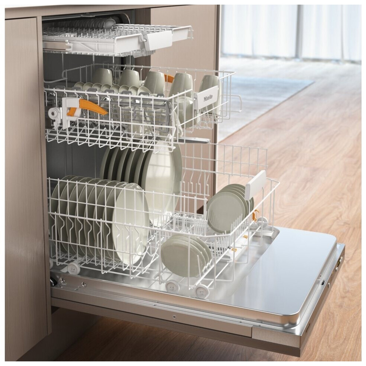 Der Miele G 5656 SCVi Active Einbaugeschirrspüler ist vollintegrierbar und bietet Platz für 14 Maßgedecke. Mit einem Geräuschpegel von nur 45 dB(A) und der Luftschallemissionsklasse A arbeitet er besonders leise.