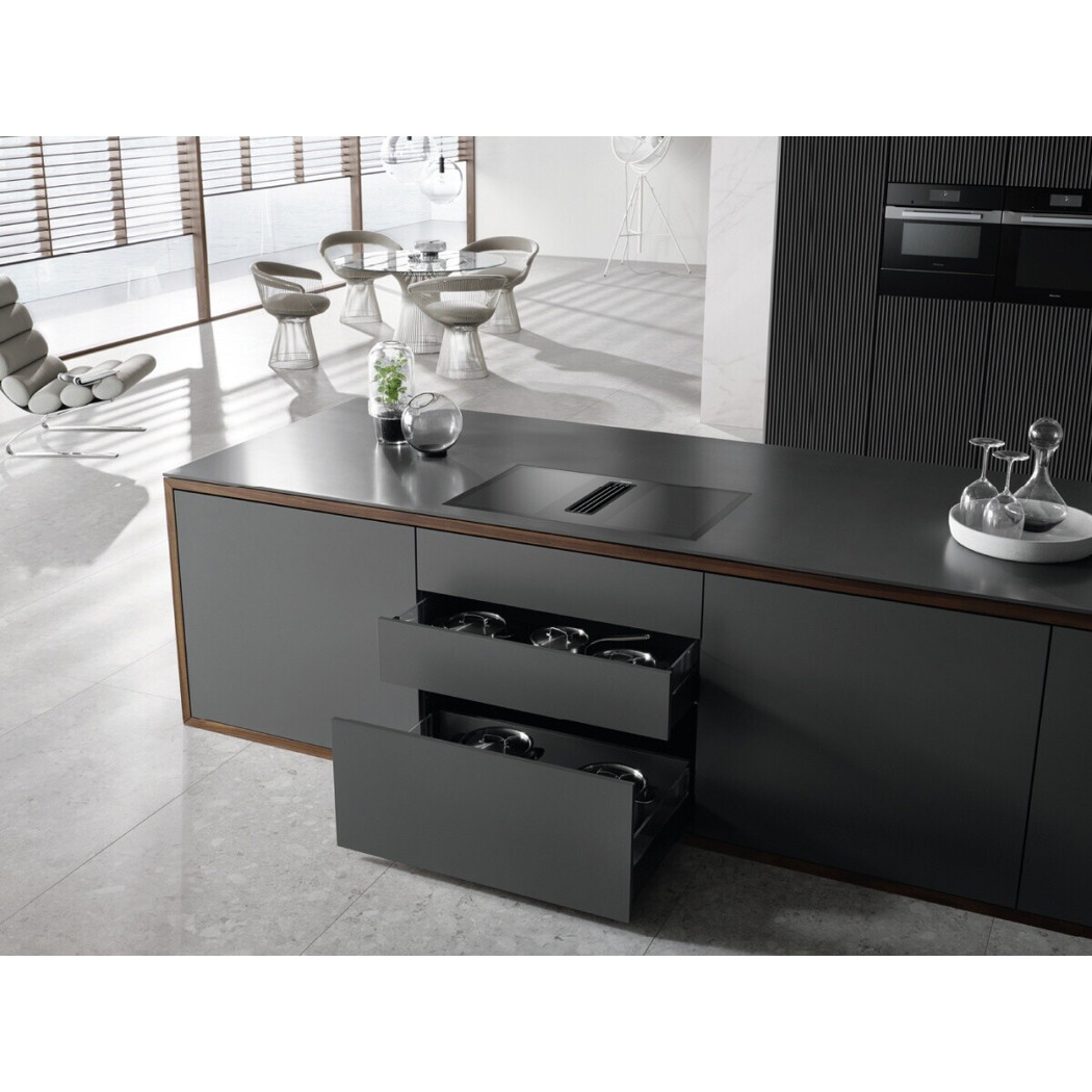 Das Miele KMDA 7476 FR Induktionskochfeld vereint elegantes Design mit modernster Technik. Es bietet vier Kochfelder und einen integrierten Kochfeldabzug, der wahlweise im Abluft- oder Umluftbetrieb genutzt werden kann.