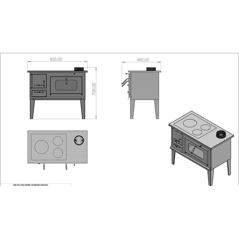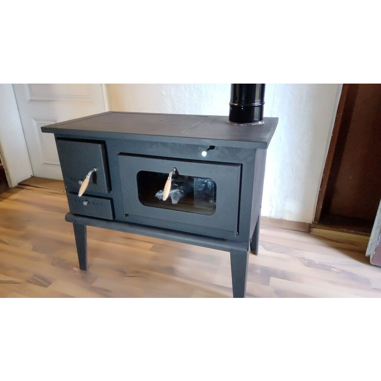 Dieser vielseitige Holzherd kann mit Holz, Holzbriketts oder Braunkohlebriketts betrieben werden und erreicht einen hohen Wirkungsgrad von 81 %. Die großzügigen Abmessungen des Backofens bieten ausreichend Platz für Ihre kulinarischen Kreationen.