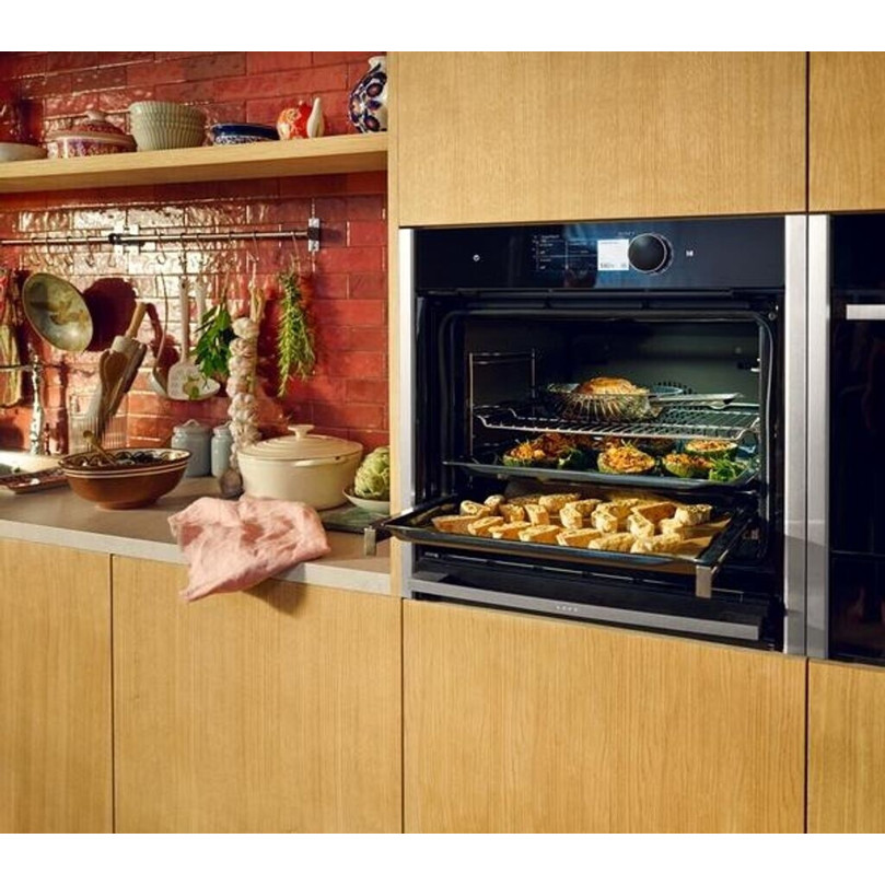 Dieser Elektrobackofen verfügt über praktische Reinigungsfunktionen wie Pyrolyse und Hydrolyse, die Ihnen die mühsame Arbeit des Schrubbens abnehmen. Dank HomeConnect mit WLAN und Sprachsteuerung lässt sich der Backofen bequem per App steuern und überwachen.