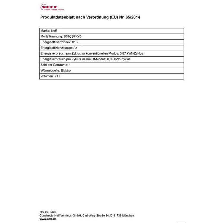 Der Neff B69CS7KY0 Einbaubackofen überzeugt mit einem großzügigen Innenraum-Volumen von 71 Litern und vielfältigen Funktionen wie Pyrolyse und Hydrolyse zur mühelosen Reinigung. Mit 14 Betriebsarten und einem Temperaturbereich von 40 - 275 °C bietet er für jedes Gericht die passende Einstellung. Dank HomeConnect ist der Backofen smart steuerbar und integriert sich nahtlos in Ihr vernetztes Zuhause.