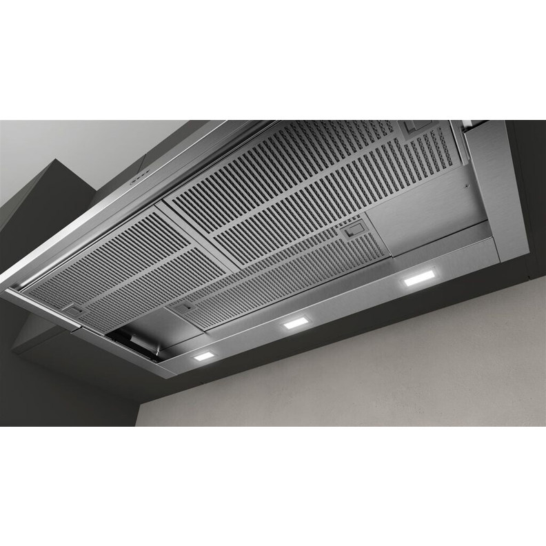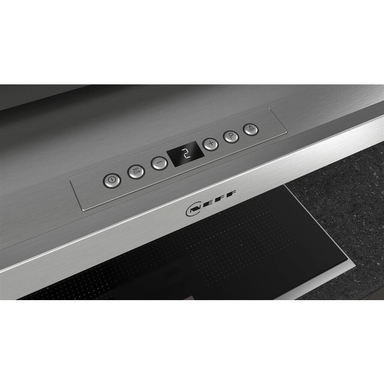 Die Neff D49ML54X1 ist eine leistungsstarke Flachschirmhaube aus Edelstahl, die sich elegant in jede moderne Küche einfügt. Mit einer Breite von 89,8 cm und einer maximalen Gebläsestärke von 395 m³/h im Abluftbetrieb sorgt sie effektiv für frische Luft beim Kochen. Die innovative SoftLight LED-Beleuchtung mit 3500 K Farbtemperatur und Dimmfunktion schafft zudem eine angenehme Atmosphäre.