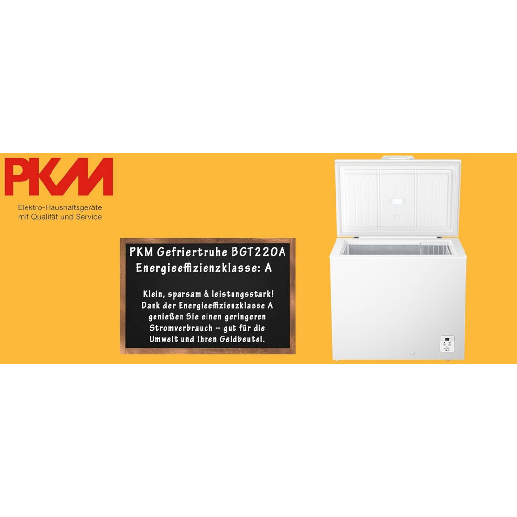 Die PKM BGT220A Gefriertruhe bietet mit einem Gefrierbereich von 217 Litern und der Schnellgefrierfunktion ausreichend Platz und Leistung, um Ihre Lebensmittel optimal zu lagern. Dank des geringen Geräuschpegels von nur 38 dB(A) arbeitet sie besonders leise und stört nicht im Haushalt.