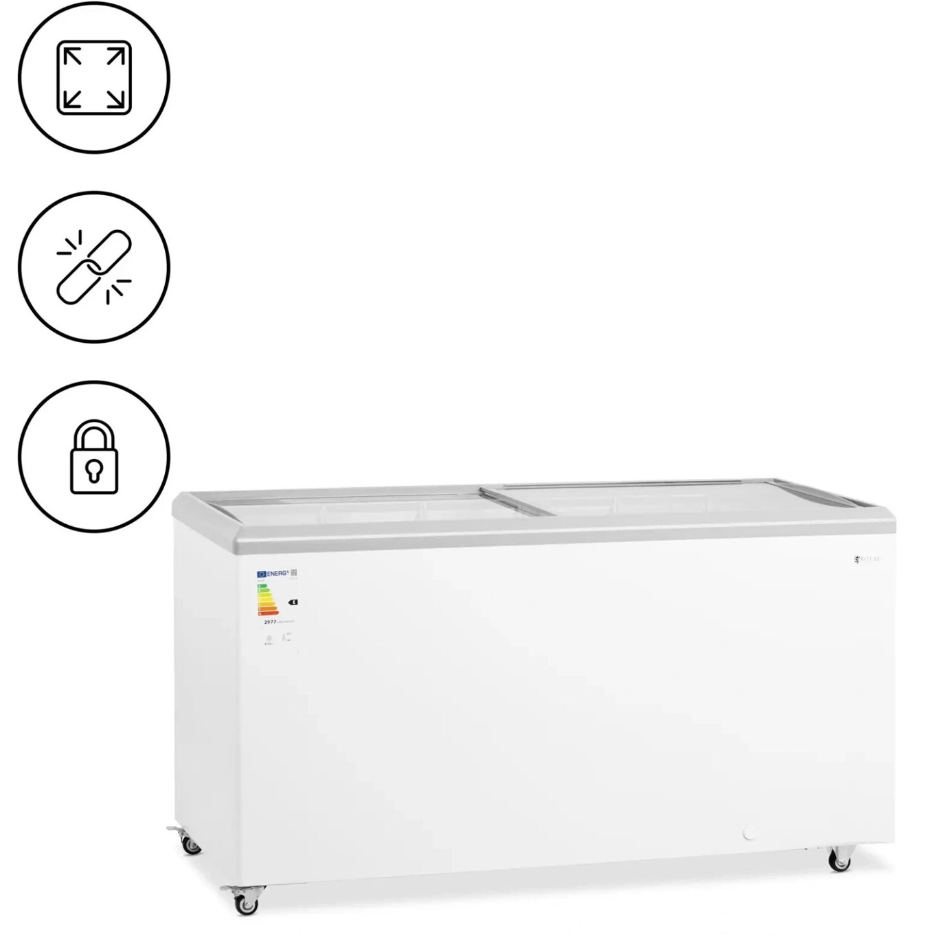 Entdecken Sie die Gefriertruhe Royal Catering RCFGDF-450 mit einem großzügigen Fassungsvermögen von 450 Litern. Ideal für den privaten Haushalt oder den gewerblichen Einsatz, bietet sie zuverlässige Kühlung und ausreichend Platz für Ihre Lebensmittel.