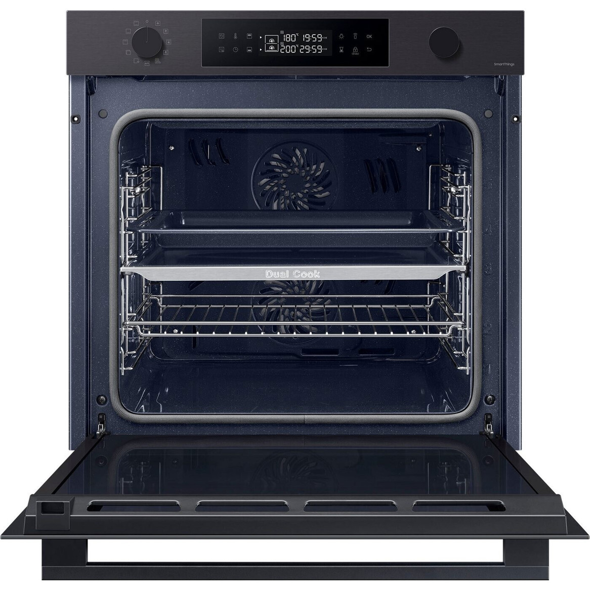 Der Samsung NV7B44503DB Elektrobackofen in elegantem Schwarz ist ein vielseitiges Einbaugerät mit 76 Litern Innenraumvolumen und modernster Technologie. Ausgestattet mit Pyrolyse und Hydrolyse, bietet er eine mühelose Reinigungsfunktion, die Ihnen Zeit und Aufwand erspart. Steuern Sie den Ofen bequem per WLAN und App-Steuerung, um Garvorgänge zu überwachen und anzupassen.