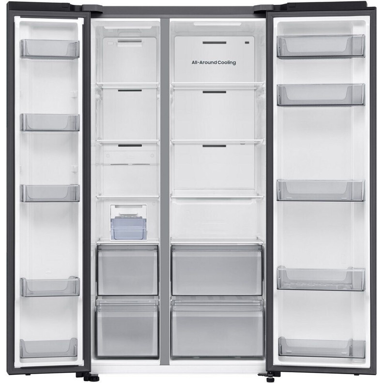 Der Samsung RS70F65QEFEF ist ein moderner Side-by-Side-Kühlschrank, der mit seinem Gesamtnutzinhalt von 640 Litern ideal für Familien geeignet ist. Dank No-Frost-Technologie gehört manuelles Abtauen der Vergangenheit an.