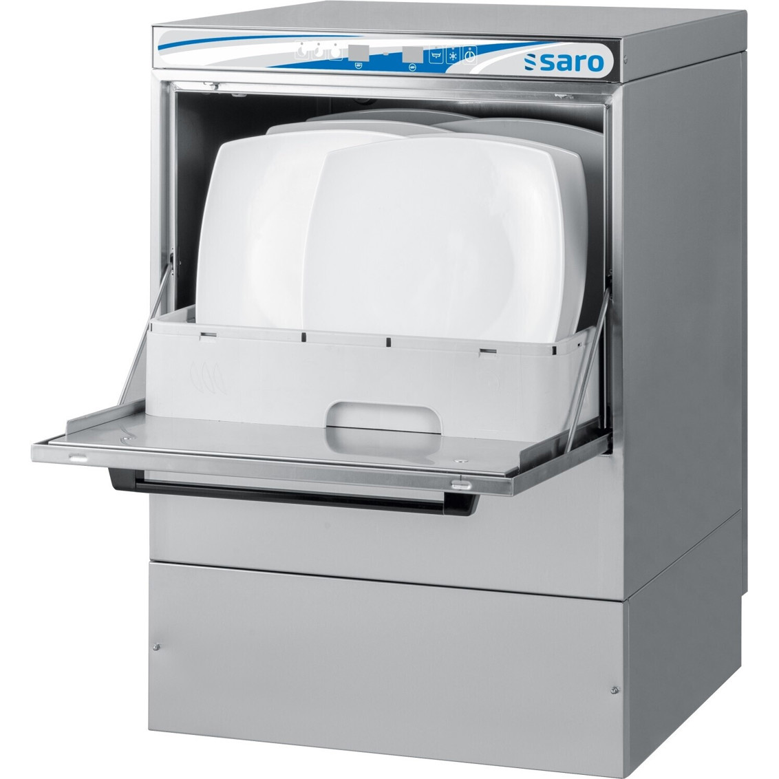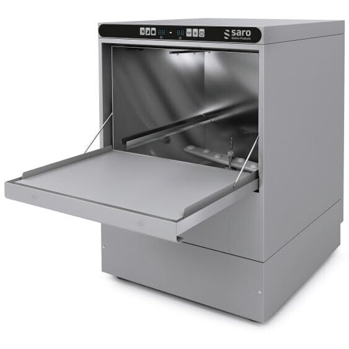 Die Saro Spülmaschine Nürnberg 440-1015 ist ein robuster Gewerbegeschirrspüler, der speziell für den Einsatz in der Gastronomie entwickelt wurde. Mit ihrem silbernen Design und den kompakten Maßen von 57 cm Breite, 60 cm Tiefe und 83 cm Höhe fügt sie sich nahtlos in jede Großküche ein. Der integrierte Besteckkorb sorgt für eine effiziente und gründliche Reinigung Ihres Bestecks.