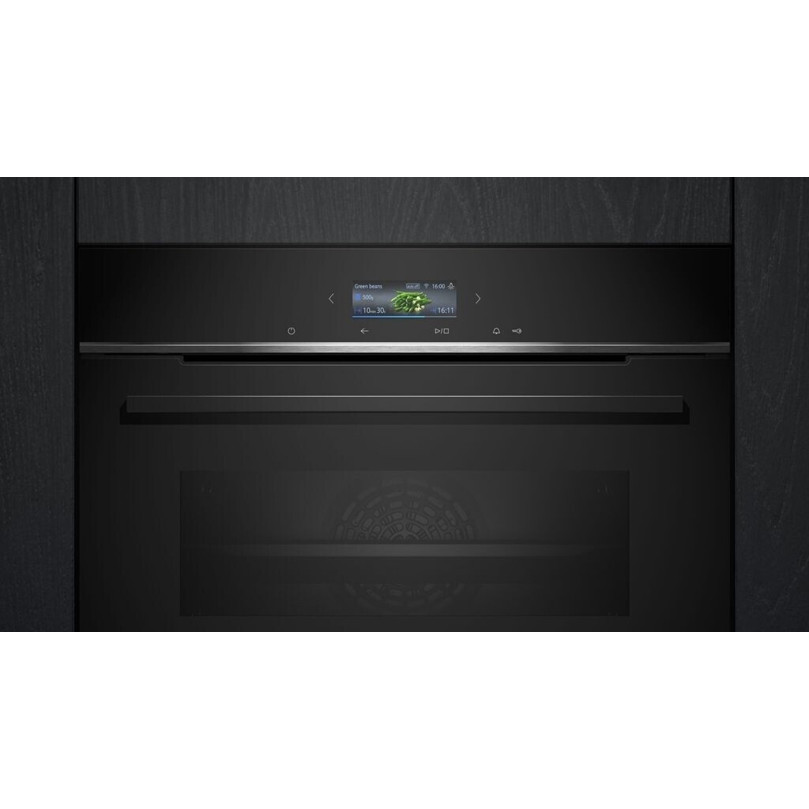 Der Siemens CB734G1B1 Kompaktbackofen ist ein Einbaugerät mit 47 Litern Garraum und 11 Beheizungsarten. Er bietet moderne Funktionen wie Smarthome-Konnektivität (Alexa, WLAN, Sprachsteuerung) und eine intuitive Touch-Control-Bedienung über ein TFT-Display.