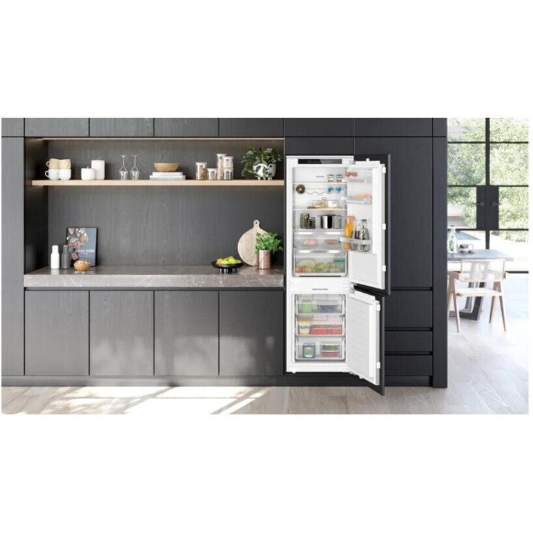Die Siemens KI86NADD0 ist eine integrierbare Kühl-Gefrierkombination mit einem Gesamtinhalt von 260 Litern und energieeffizienter No-Frost-Technologie. Sie bietet ausreichend Platz für den Wochenbedarf eines 2-Personen-Haushalts und überzeugt durch leisen Betrieb.